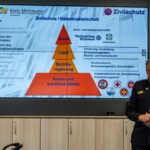 Das 2021 in Betrieb genommene Gefahrenabwehrzentrum (GAZ) des Kreises Mettmann gilt als eines der modernsten Einrichtungen im Land. Bei der Führung durch das Gebäude bezeichnete unser Jong, Kreisbrandmeister Torsten Schams, das GAZ als "Musterbeispiel für moderne und effiziente Gefahrenabwehr". Das sechs-geschossige Gebäude am Adalbert-Bach-Platz in Mettmann beherbergt die Rettungsleitstelle, ein Feuerwehrübungszentrum mit Übungshalle, eine Brand-simulationsanlage und Atemschutz-Übungsstrecke, die Kreis-Feuerwehrschule und das Amt für Brand- und Katastrophenschutz sowie den Rettungsdienst des Kreises. Zudem ist dort auch die Leitstelle der Kreispolizeibehörde angesiedelt.