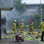 Rauch dringt aus dem Gebäude, ein Mann ruft im oberen Stockwerk um Hilfe, Sirenengeheul, die Freiwillige Feuerwehr rückt an. Heute ist es nur eine Übung, die die Ratinger Jonges im Rahmen ihres Besuches des Gefahrenabwehrzentrums in Mettmann miterleben!