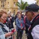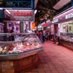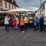 Anschließend war wieder Freizeit angesagt, die alle in die benachbarte Markthalle führte, wo einigen sogleich nach dem Eintritt beim Anblick der dargebotenen Meeresfrüchte – u.a. Austern und Hummer – oder der vielen Fischsorten an der Fischtheke die Erinnerung an die Reise der Ratinger Jonges in die Normandie vor eineinhalb Jahren in Erinnerung kam. Aber auch die Angebote an den anderen Ständen, egal ob Obst, Gemüse, Fleisch oder Käse hätten bestimmt so manchen zum Einkaufen verlockt. Aber noch standen ja anderthalb Tage Urlaub vor allen. Anschließend sah man viele Teilnehmer beim etwas verspäteten Mittagessen in den Restaurants oder Imbissbuden am Place Saint-Jacques, bevor es wieder zurück zum Bus ging.