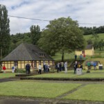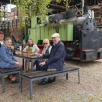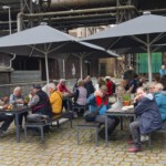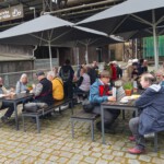 Damit war auch das Ende der Führung erreicht. Bevor es zum wartenden Bus auf dem Parkplatz zurück- und damit zum nächsten Programmpunkt weiterging, nutzten alle noch die Möglichkeit, sich im benachbarten Biergarten mit flüssiger und/oder fester Nahrung zu stärken, wobei uns das Glück hold war, weil der Regen in der Nacht noch aufgehört hatte und es auch relativ warm war.