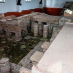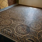 Der erste informative Stopp erfolgte bei der ehemaligen Römischen Villa Otrang bei Fließem im Eifelkreis Bitburg-Prüm. 1825 stieß man bei Feldarbeiten auf Reste des ehemaligen Gutshofes, die sich mit der Zeit bei den nachfolgenden Ausgrabungen als eines der größten und am besten erhaltenen Exemplare nördlich der Alpen herausstellte. Besonders hervorzuheben sind hierbei die prunkvollen Mosaik-Fußböden, von denen bis heute noch vier in den ehemaligen Räumen des Herrenhauses weitestgehend erhalten sind. Neben einigen weiteren, ebenfalls nur noch teilweise vorhandenen Fundamentresten, ist auch das Badehaus erwähnenswert, in dem man noch gut das System der damaligen Fußbodenheizungen erkennen kann. Der Rundgang erfolgte auf eigene Faust, die notwendigen Informationen konnte man den zahlreichen Informationstafeln entnehmen.