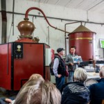 Damit war aber unser Besuch in Frankreich noch nicht beendet, denn wer lecker gegessen hatte, hat auch ein leckeres Tröpfchen verdient und das wollten wir in der „Distillerie de Melanie“ erproben, weshalb es außerhalb von Metz nach Marieulles-Verzoon ging, wo wir schon erwartet wurden. Nachdem alle im kleinen Produktionsraum der Brennerei Platz genommen hatten, wurde uns der Prozess der Herstellung der aus eigenem Anbau stammenden Früchte wie Mirabellen Renekloden, Zwetschgen, Williamsbirnen und Äpfeln erzeugten Edelbrände erläutert (dankenswerterweise von W. Heithorst auch ins Deutsche übersetzt), wobei auf die besonders aufwändige Bearbeitung der Mirabellen hingewiesen wurde, um daraus schließlich einen mehrfach ausgezeichneten Mirabellenbrand herstellen zu können. Da es anschließend zur Erprobung der beworbenen Brände ging und man sich von der Qualität der Erzeugnisse auch geschmacklich überzeugen konnte, war es kein Wunder, dass dann auch so manche Flaschen – egal ob Brände, Liköre oder Aperitifs – und aber auch Honig, eingelegte Mirabellenfrüchte und Süßigkeiten gekauft und in einer Tüte verpackt zum Bus getragen wurden, mit dem es kurz darauf zum Hotel in Losheim zurück ging.