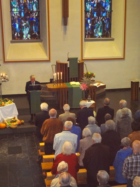 Die heimische Sprache nicht in Vergessenheit geraten zu lassen, das ist das große Anliegen des Mundartkreises der Ratinger Jonges. Da Liturgie und Leben eng miteinander verknüpft sind, spielt dies auch während der Messfeier in Mundart traditionell eine große Rolle. Bereits seit 1997 gestaltet der Mundartkeis der Jonges Mundartmessen und die gehören inzwischen zum festen Bestandteil des größten Heimatvereins der Stadt. Friedel Bonn, der Leiter des Mundartkreises, seine Mitstreiter, Pfarrer Karl Ernst Vogelbusch und Hans Müskens haben in vielen Stunden zum Gelingen der Messe beigetragen. Intensive Arbeit steckt in den Übersetzungen der Lieder und Gebete. Es wurde aufgeschrieben, geübt sowie Aufgaben verteilt, bis es endlich soweit war. Sehr gut besucht präsentierte sich dann die evangelische Stadtkirche in Ratingen, als der Baas der Jonges, Georg Hoberg, die Kirchenbesucher mit den Worten hezzlich weelku`eme zum Monkartjottesdienst mit dem Thema: Erntedank,“Mer bede on senge op Platt“, begrüßte. Wenn die Besucher während der Messe inbrünstig sangen und beteten, entstand im Kirchenraum eine besondere Atmosphäre.