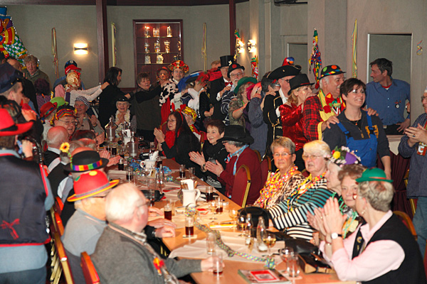 Man sagt den Ratinger Jonges so einiges nach, so unter anderem, dass eine Stadt sich glücklich schätzen kann, in ihren Reihen einen Heimatverein zu beherbergen, der sich so fu¨r das Wohl ihrer Bürger einsetzt. Die Jonges verstehen aber auch zu feiern. Für die närrische karnevalistische Hoch-Zeit, bei den Jonges „Närrischer Frühschoppen, Karneval op Platt“ genannt, erwartete den Baas der Jonges, Georg Hoberg, bei seiner Begrüßungsrede op Platt natürlich ein rappelvoller Spiegelsaal. Der „Närrische Frühschoppen“, immer Karnevalssamstag ab 10.11 Uhr, hat eine langjährige Tradition. Bereits seit 1988 führen die Jonges diese Veranstaltung durch. Ein tolles Programm: als Höhepunkt der Besuch des Kinderprinzen- und Prinzenpaares mit großem Gefolge und Mitgliedern des Karnevals-Ausschusses. Das versetzte die Besucher in karnevalistische Hochstimmung. Die Prinzenpaare beglückwünschten die Jonges für diese gelungene Veranstaltung und Alexander I. erklärte aufgrund des Gesamteindruckes des Vereins spontan seine Neumitgliedschaft. Der anwesende Vorstand machte das unvermittelt aktenkundig und Baas Hoberg begrüßte ihn vor vollem Haus als 888. Mitglied. Fazit: Auch die Ratinger Jonges verstehen zu feiern und man sollte zukünftig ein solches Ereignis einfach nicht verpassen. Vorstandsmitglied Achim Pohlmann, der wiederum ein Programm der Extraklasse und einen Soloautritt als „Ne Straßenbahnfahrer der Linie 712“ hatte, moderierte souverän durch die Veranstaltung. So wurden die Gäste prächtig unterhalten. Es verlangt nach Wiederholung.