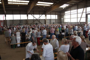Die Reithalle auf Gut Lohof ist der Treffpunkt des jährlichen Biwaks. Die war wie immer rappelvoll. Dies ist ein Zeichen, dass die Jonges bedingt durch ihre Arbeit, viele Freunde haben.