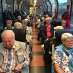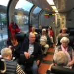Bei strömendem Regen fuhr der Zug über das Landwasser Viadukt, Albula Tunnel, Pontressina und danach am Monterasch Gletscher vorbei. Weiter durch das Puschlav nach Tirano in Italien. Auf der Fahrt wurden wir vom Jong Gerhard Falkenstein zu einem leckeren Schnäpsen eingeladen aus Anlass seines Geburtstages.