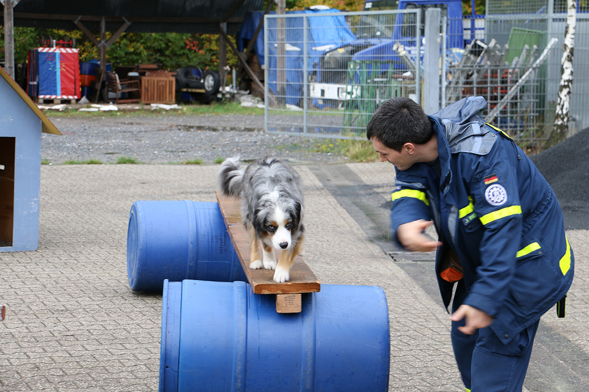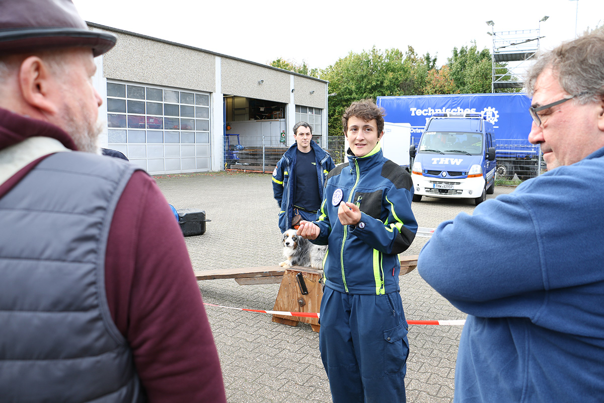 Im Anschluss folgte in drei Gruppen eine Führung über das Gelände des Ortsverbandes, wo die Teileinheiten ihre Ausstattung an verschiedenen Stationen aufgebaut hatten. So erläuterte die Fachgruppe Wasserschaden/Pumpen unter anderem die Arbeitsweise ihrer Hochleistungspumpe Börger. Die erste Bergungsgruppe präsentierte die auf dem Gerätekraftwagen verlastete Ausstattung sowie einfache Methoden zur Dekontaminierung. Die Fachgruppe Ortung zeigte praktisch die Fähigkeiten von Rettungshunden und veranschaulichte die Möglichkeiten, die die technischen Ortungsgeräte bieten. Die schwere Bergung stellte ebenfalls die Ausstattung vor und erläuterte die Verlastung der Ausstattung auf den Fahrzeugen und der Zugtrupp stellte dar, wie man eine Führungsstelle aufbaut. Ein besonderer Hingucker war mit Sicherheit die Präsentation der Jugendgruppe. Mittels einer kleinen Einsatzübung zeigten Sie, wie spielend helfen lernen geht.