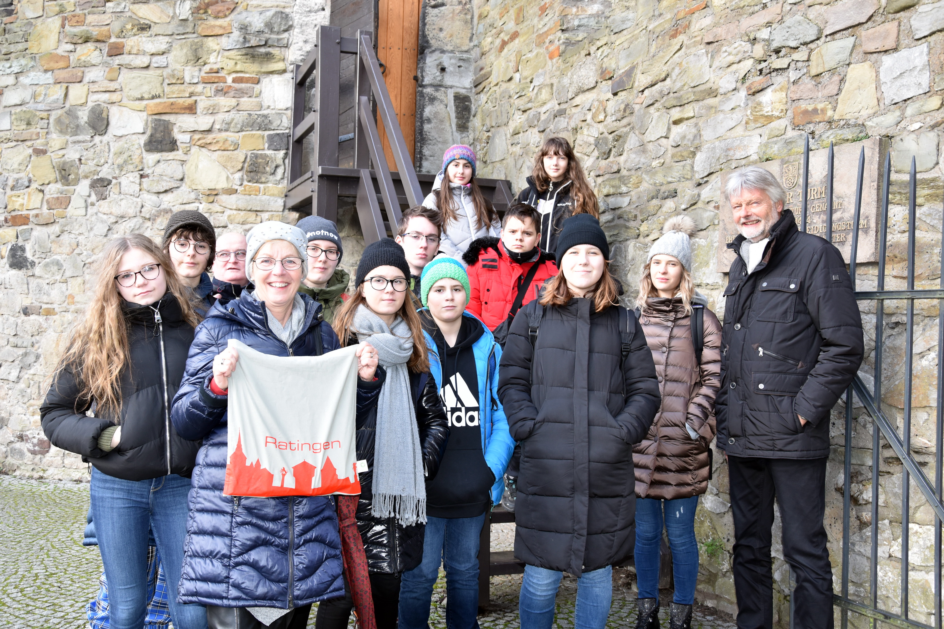 Noch ganz unter dem Eindruck von Sturmtief „Sabine" stehend, besuchten am 11. Februar elf polnische Austauschschüler/innen aus Gliwice (Polen), mitsamt ihren beiden Lehrkräften im Rahmen eines historischen Stadtrundgangs den Dicken Turm.