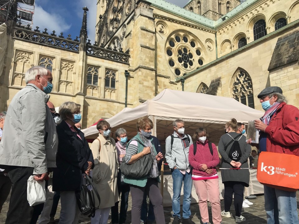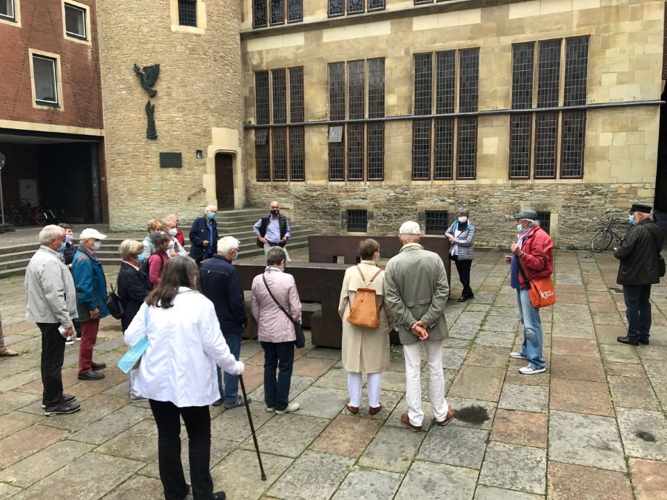 Schon auf der Hinfahrt wurden wir vom Reisebaas Norbert Halverkamps immer mal wieder auf interessante Orte links und rechts der Strecke aufgeklärt und das setzte sich dann auch anschließend in Münster (westfälisch Mönster, niederländisch: Munster, friesisch: Múnster, altsächsisch Mimigernaford, lateinisch Monasterium) bei der Führung – in zwei Gruppen – fort.