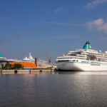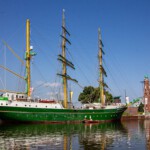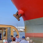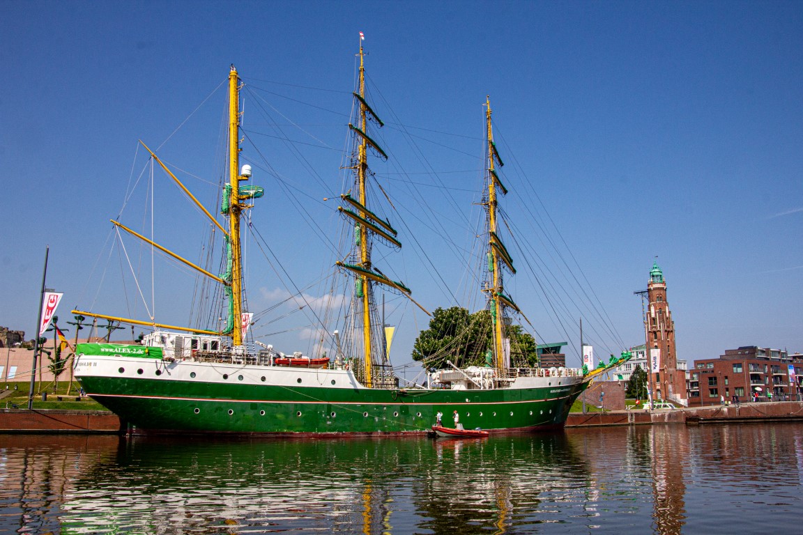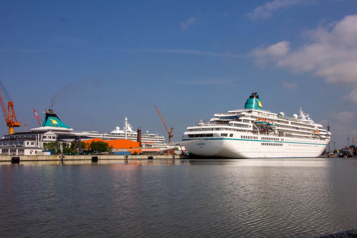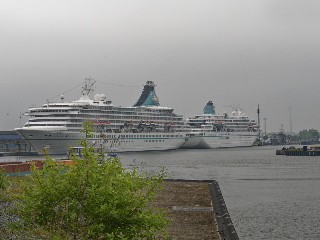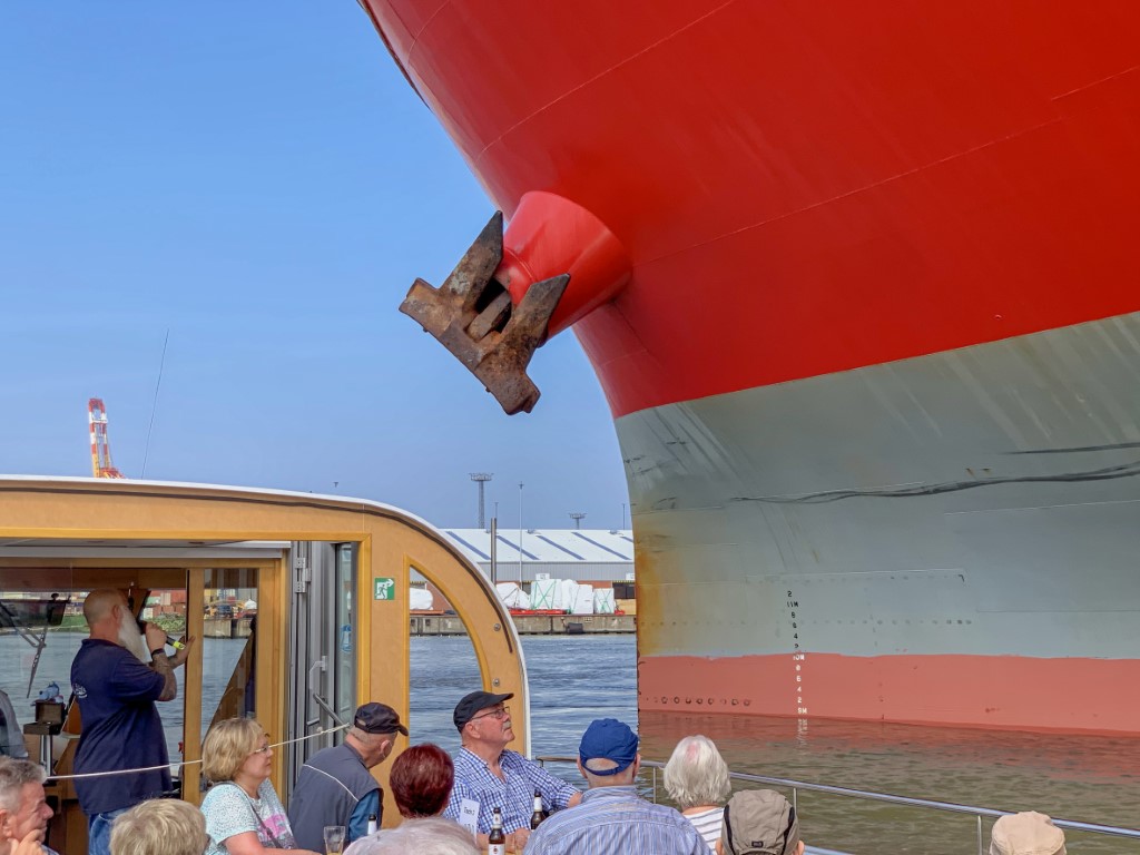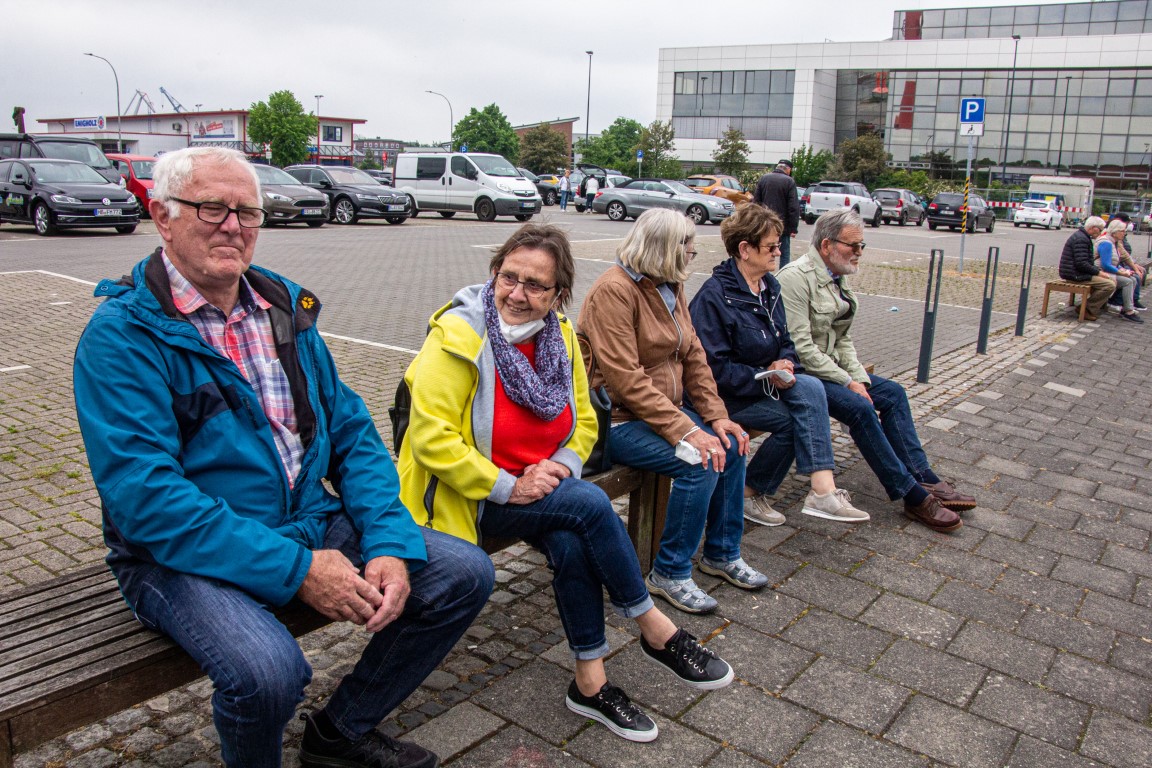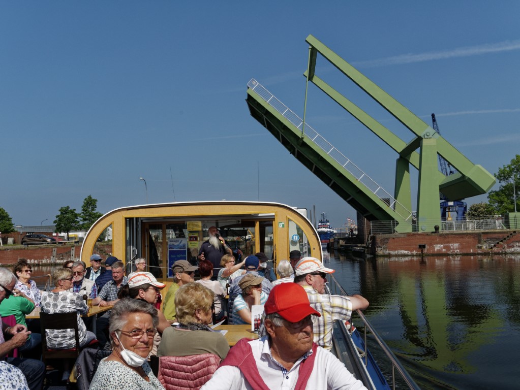 Als tagesfüllendes Programm war Bremerhaven angesagt, weshalb es gleich nach dem Frühstück zum Bereich Alter Hafen im Zentrum ging. Im Gegensatz zu Bremen waren aber hier noch keine Gruppenführungen erlaubt, weshalb wir direkt zum Anleger für die Hafenrundfahrt gingen. An Bord stellte sich heraus, dass wir die einzigen Gäste sind. Wer schon mal eine Hafenrundfahrt mitgemacht hat, weiß, dass alles, was man sieht, mit launigen Worten erklärt und erläutert wird. Wir erfuhren, dass man sich nach dem Passieren der alten Kaiserschleuse nun im Überseehafen befindet, die aber eine Exklave der Stadt Bremen ist, jedoch die Stadt Bremerhaven vertraglich für das Gebiet teilweise die Kommunalverwaltung ausübt – ganz schön kompliziert. Neben dem heute normalen Containerumschlag und dem Kreuzfahrtterminal gehörte aber der Autoport zu den wirtschaftlichen Hauptträgern des Hafens, der mit über 2,3 Millionen Fahrzeugen pro Jahr zu den größten Autohäfen der Welt zählt, weshalb jährlich mehr als 1300 Autoschiffe das Terminal anlaufen. Und gleich mehrere dieser riesigen ungewöhnlich aussehenden Schiffe konnten von uns bestaunt werden, ebenso zwei Kreuzfahrtschiffe, die darauf warteten, endlich wieder Passagiere an Bord nehmen zu dürfen.