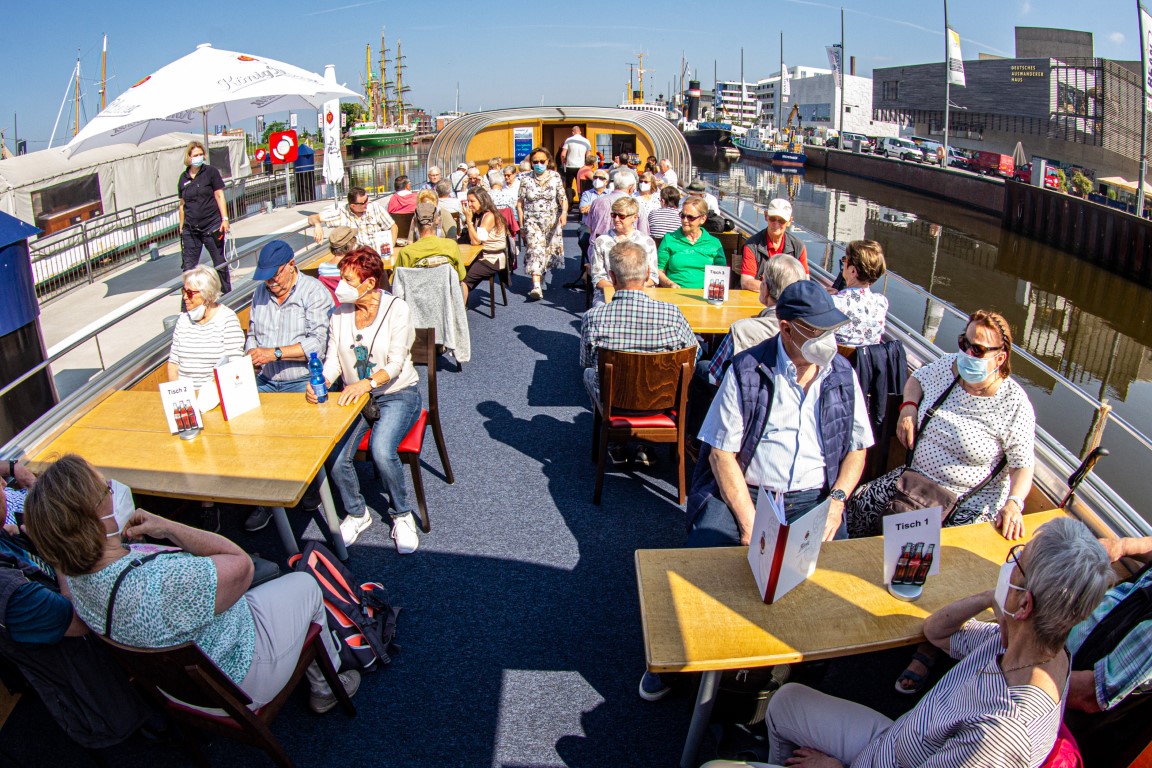 Die Freizeit danach nutzte man zum Sitzen auf dem Deich, um die langsam dahinfließende Weser zu betrachten, oder zu einer Fahrt im Riesenrad, um auch von oben einen Blick auf die Hafenwelten zu erhalten. Gegen den kleinen Hunger gab es Fischbrötchen oder man ließ sich in der Außengastronomie bei bestem Wetter von den Kellnern verwöhnen.