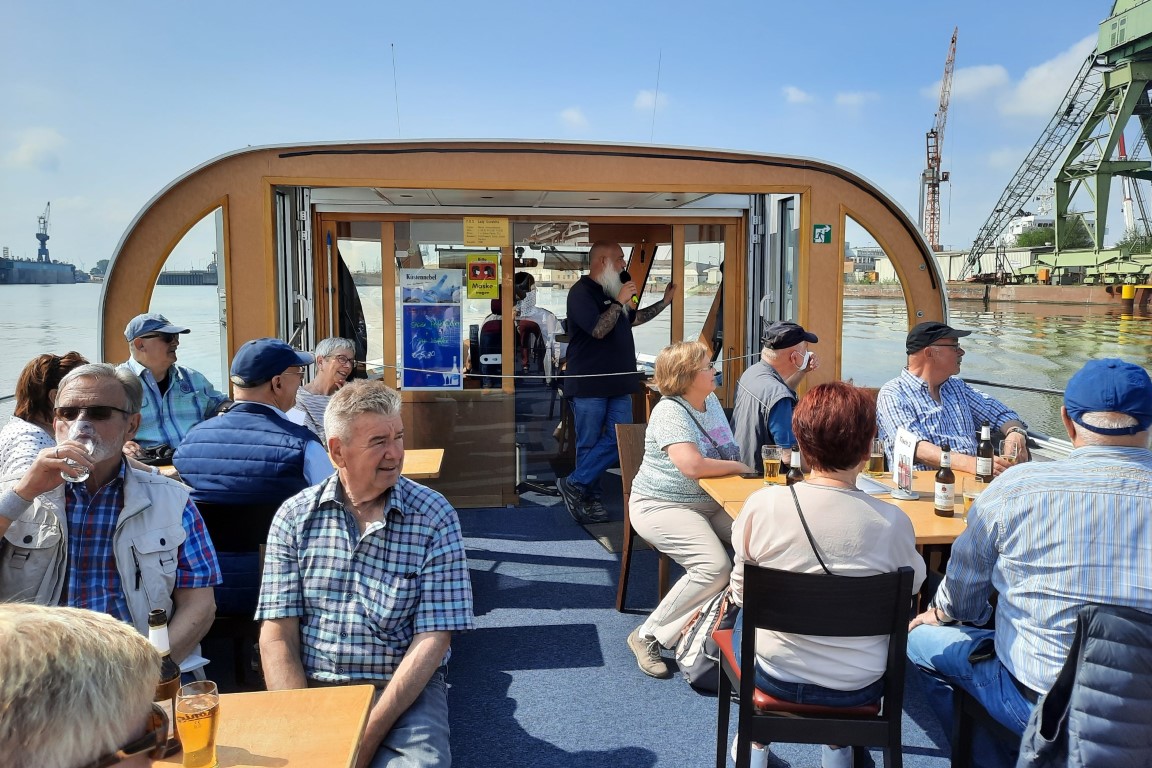Nach der gut einstündigen Rundfahrt war Freizeit angesagt, die jeder nach seinem Gusto verbringen konnte. Einige führte der Weg sogleich in das „Mein Outlet & Shopping-Center“, in dem man sich nach dem Betreten direkt nach Italien versetzt fühlt, da hier die Ladenpassage wie die Gassen in einem kleinen italienisches Dorf erbaut wurde. Von hier aus geht es weiter direkt am Alter Hafen entlang, wo man auf das hier liegende U-Boot Wilhelm Bauer oder das ehemalige Feuerschiff Elbe 3 sehen konnte. Diese Museumsschiffe wie auch das nebenan liegende Deutsche Schifffahrtsmuseum und das ebenfalls sehenswerte Deutsche Auswandererhaus durfte man leider noch nicht besichtigen.