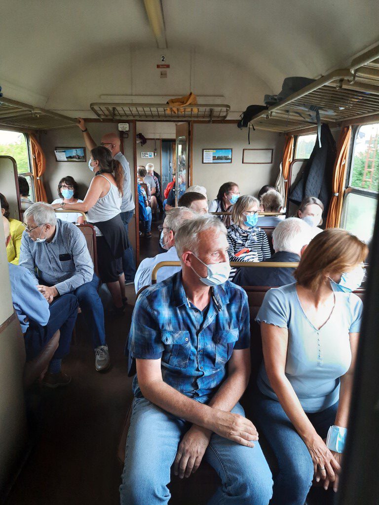 Die Stimmung in den vollbesetzten Waggons war ausgelassen. Weil es erstaunlich warm war, waren praktisch alle Fenster geöffnet. „Wäre in den modernen Zügen heute nicht mehr möglich“, stellte Andreas Preuß fest, stellvertretender Vorsitzender der Lintorfer Heimatfreunde.