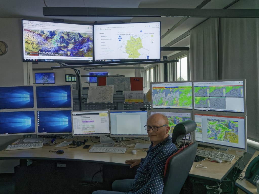 Dazu gehörte eine Besichtigung der Warnzentrale in der Abteilung für Wettervorhersage mit einer kaum überschaubaren Zahl von Monitoren, wo lokale, regionale und internationale Messungen und Modelle (noch) unter menschlicher Oberaufsicht zu Vorhersagen und konkreten Warnungen zusammenfügt werden.