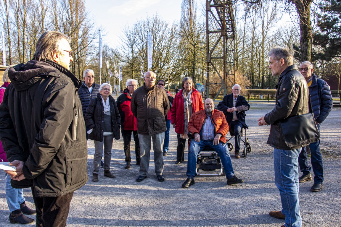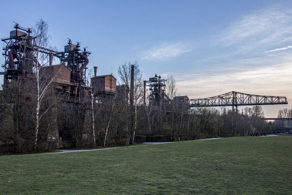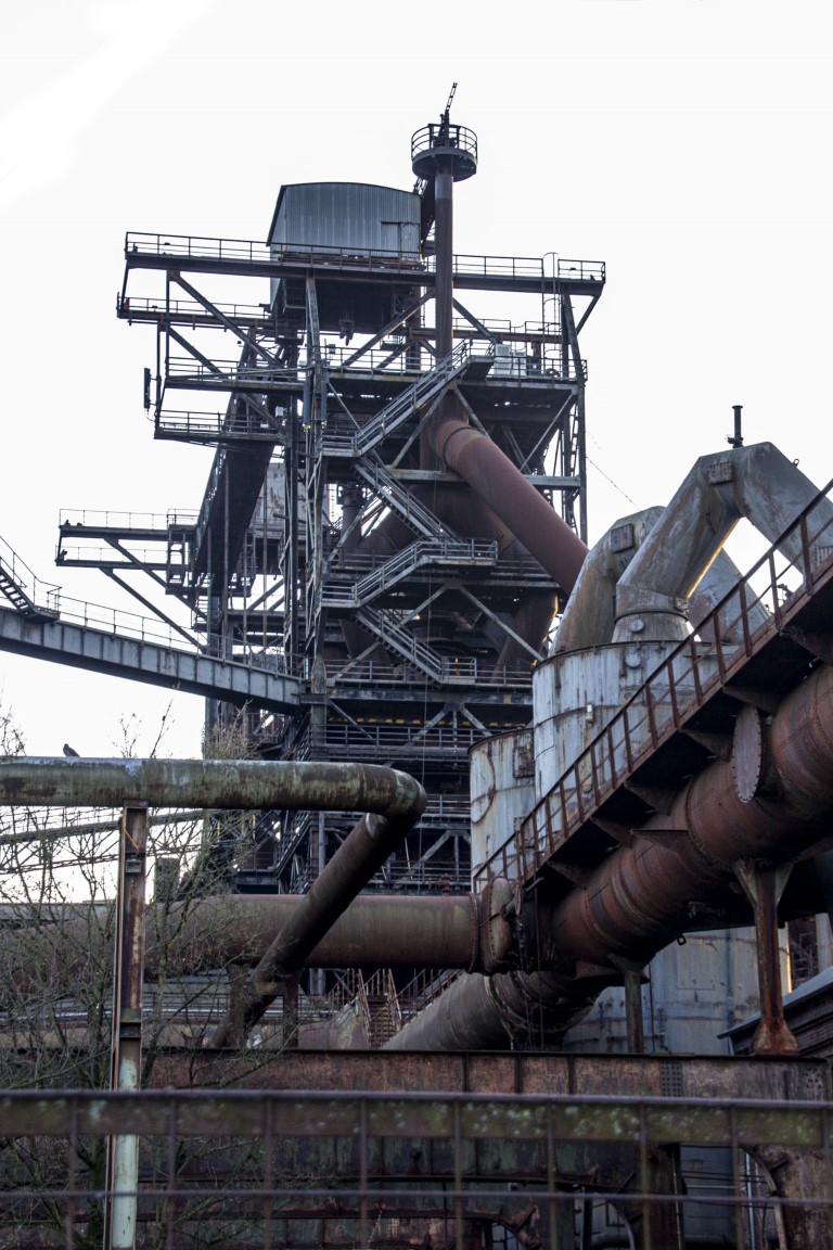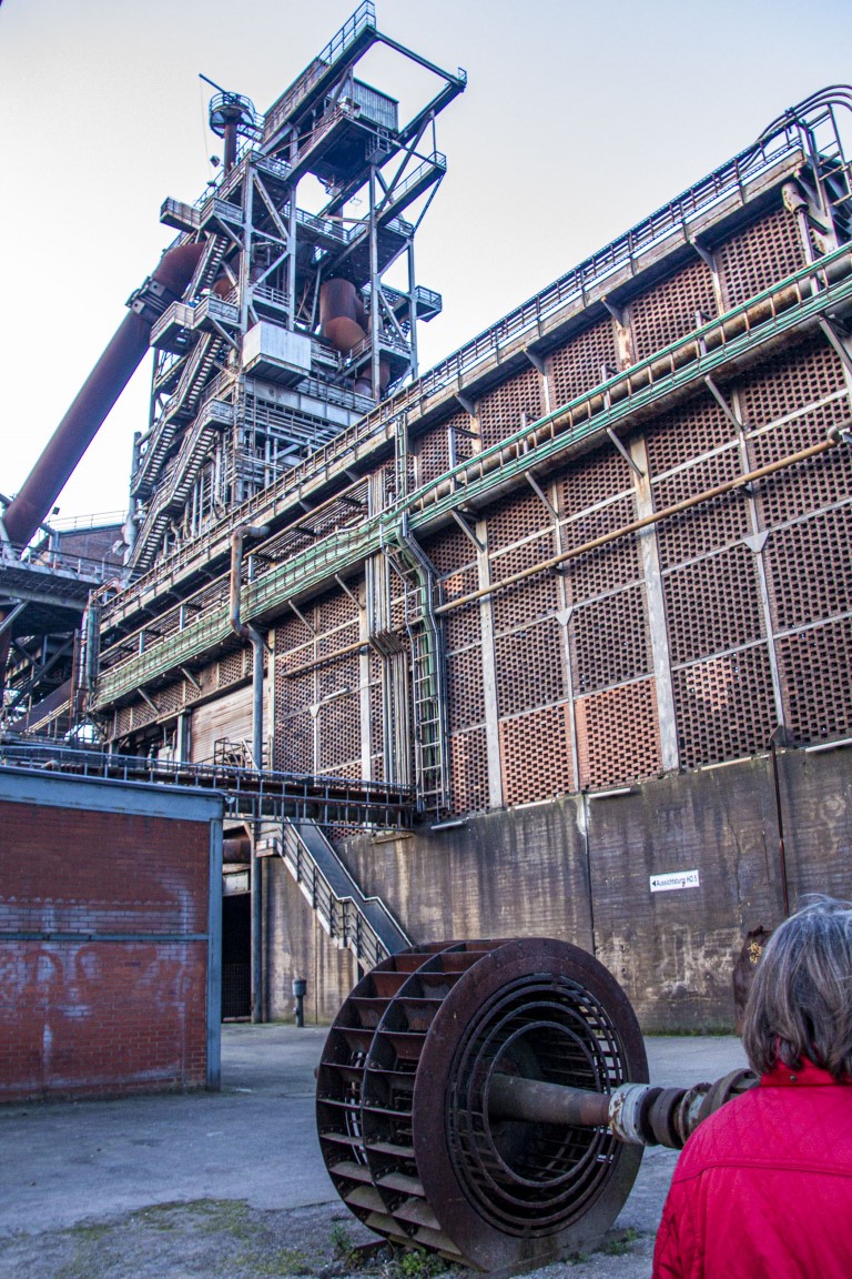 Aufgeteilt in drei Gruppen ging es auf verschiedenen Wegen durch das Werk, bei Zwischenstopps erzählten die Führer informative Hintergründe über die Geschichte des Hüttenwerks (gegründet 1901 von den damaligen „Rheinische Stahlwerke zu Meiderich bei Ruhrort“, später eine Tochter der Thyssen-Gruppe) und die hier stattgefundenen Produktionsabläufe: Wie aus dem per Schiff und Bahn angelieferten Roherz mit Hilfe der damals noch im Ruhrgebiet geförderten Kohle (die aber erst noch in der Nähe befindlichen Kokerei zu Koks verarbeitet werden musste) schließlich das Eisen in letztlich fünf Hochöfen produziert wurde. Von denen stehen heute noch drei, nachdem die Öfen 3 und 4 bereits 1968 bzw. 1970 abgerissen worden waren. Den verbleibenden drei Hochöfen blieb zwar dieses Schicksal erspart, 1982 wurden aber auch die Hochöfen 1 und 2 stillgelegt und 1985 der letzte. Die Stahlproduktion wurde ins benachbarte modernere Hüttenwerk der August Thyssen AG in Duisburg-Hamborn verlagert.