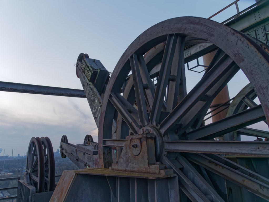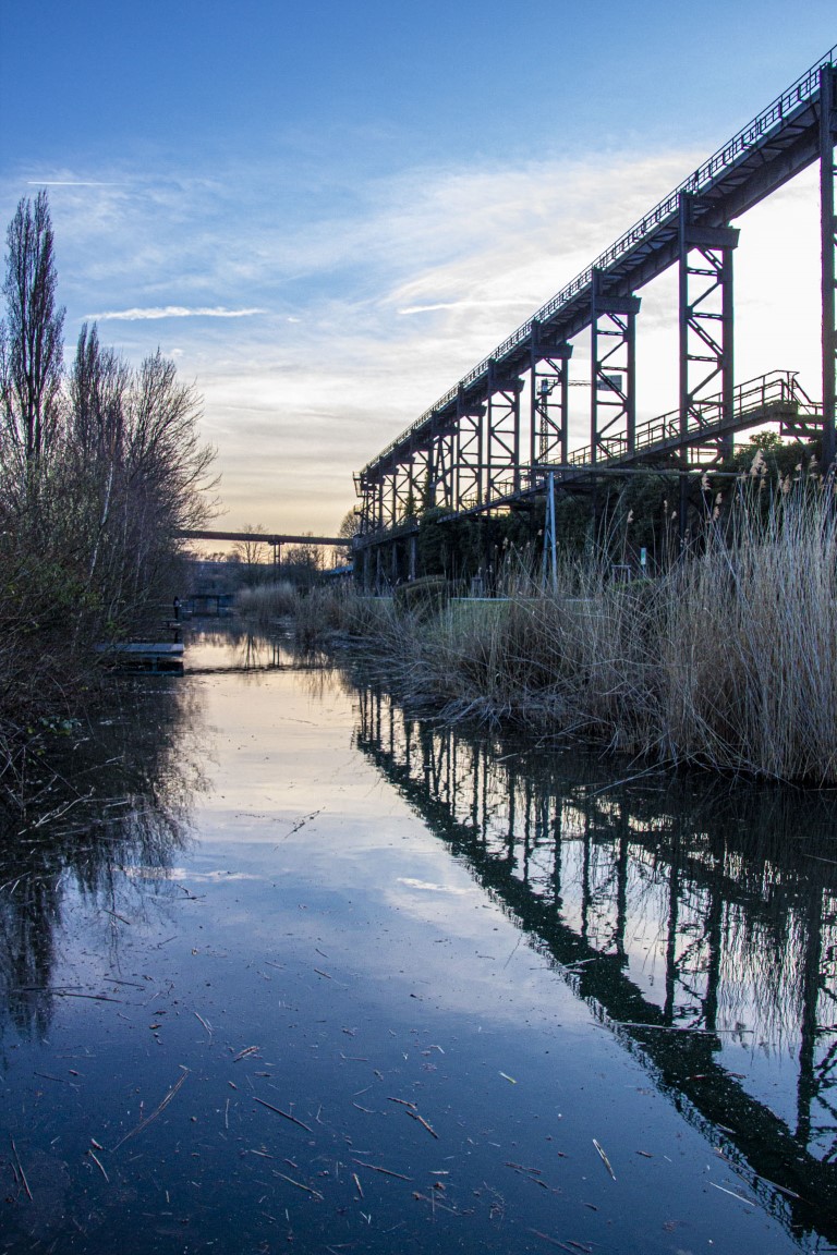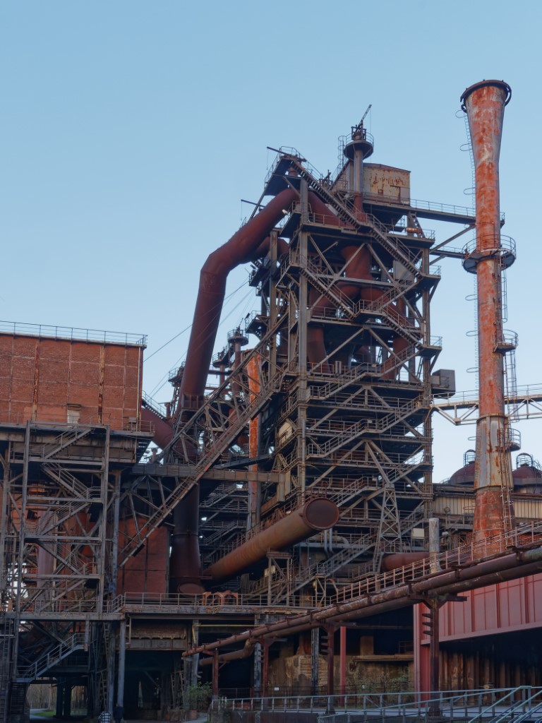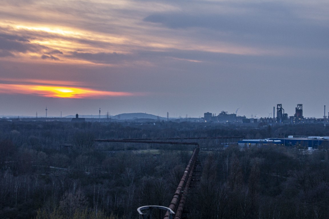 Mutige und fitte Teilnehmer unserer Fahrt hatten dafür zum Abschluss der Führung noch die Möglichkeit über 252 Treppen auf die oberste Bühne am Hochofen 5 zu steigen, um mit beginnender Dämmerung und mit der sinkenden Sonne am Horizont aus 70 Meter Höhe weit über Duisburg hinwegzusehen.