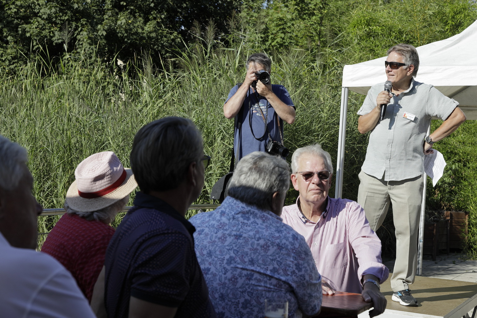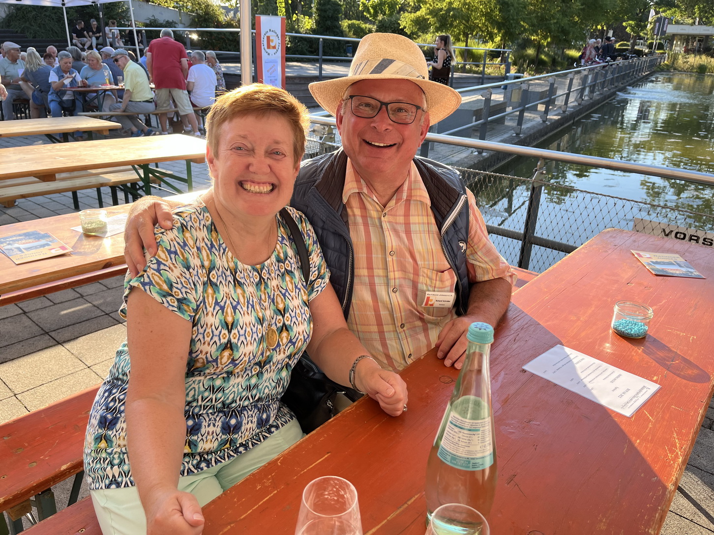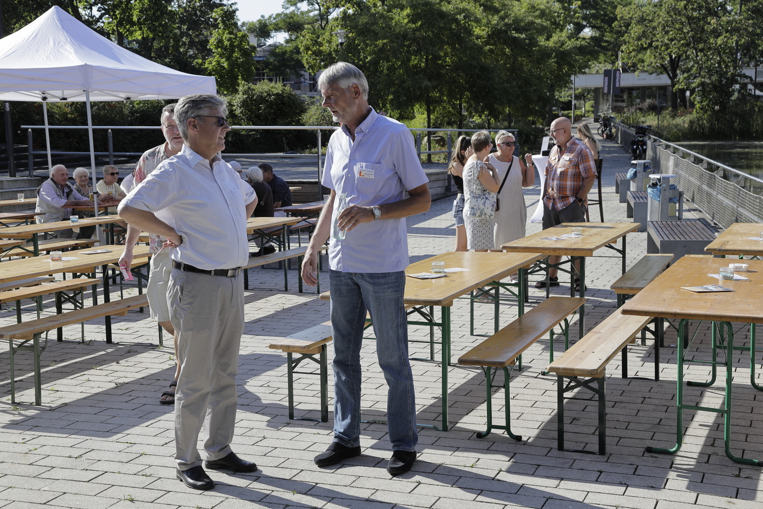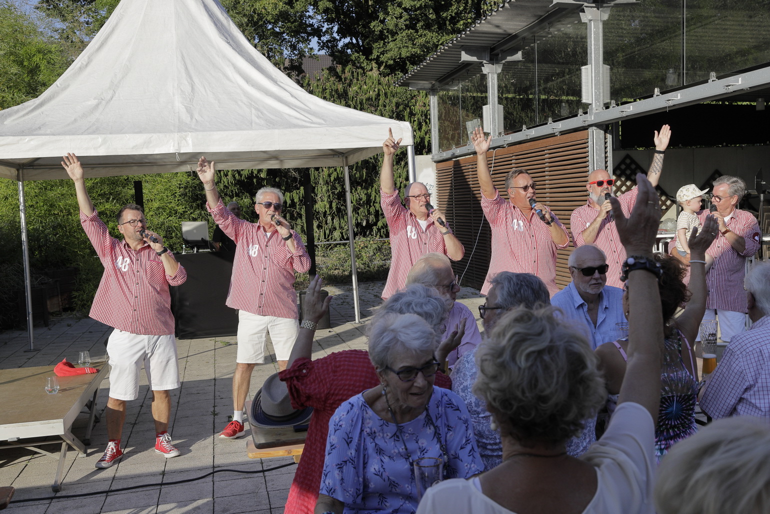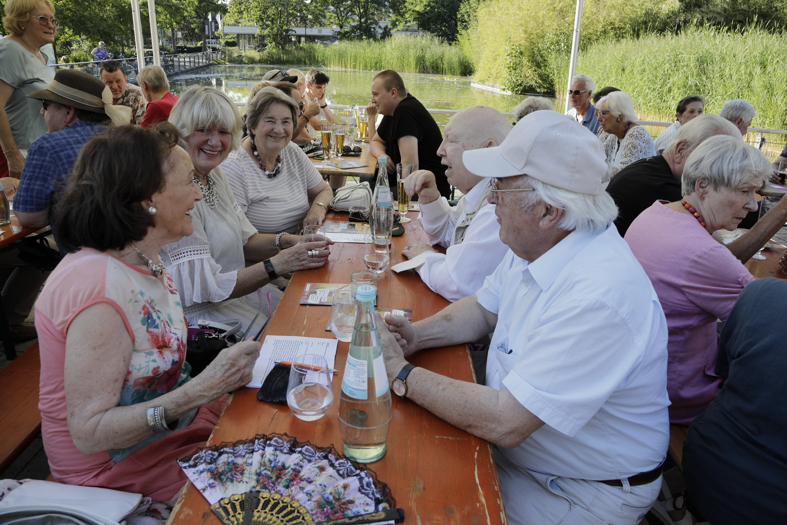 Rund 300 Besucher und Gäste tummelten sich bis in die späten Abendstunden in dem ansprechenden Ambiente, genossen die (sehr) warme Sommernacht bei kühlen Getränken und leckeren Snacks vom Stadthallen-Caterer. „Insgeheim hatte ich auf eine noch bessere Besucherzahl gehofft‟, sagte Dullni. Vermutlich habe die Hitze mit über 30 Grad aber doch noch viele abgehalten, hierher zu kommen. Die Resonanz auf den neuen Standort sei aber durchweg positiv gewesen. Auch das Unterhaltungsprogramm mit der Gesangstruppe „Hahnenschrei‟ der Roten Funken, dem Ratinger Nachwuchsmusiker Alex Seidl und einem DJ kam bei den Gästen prima an.