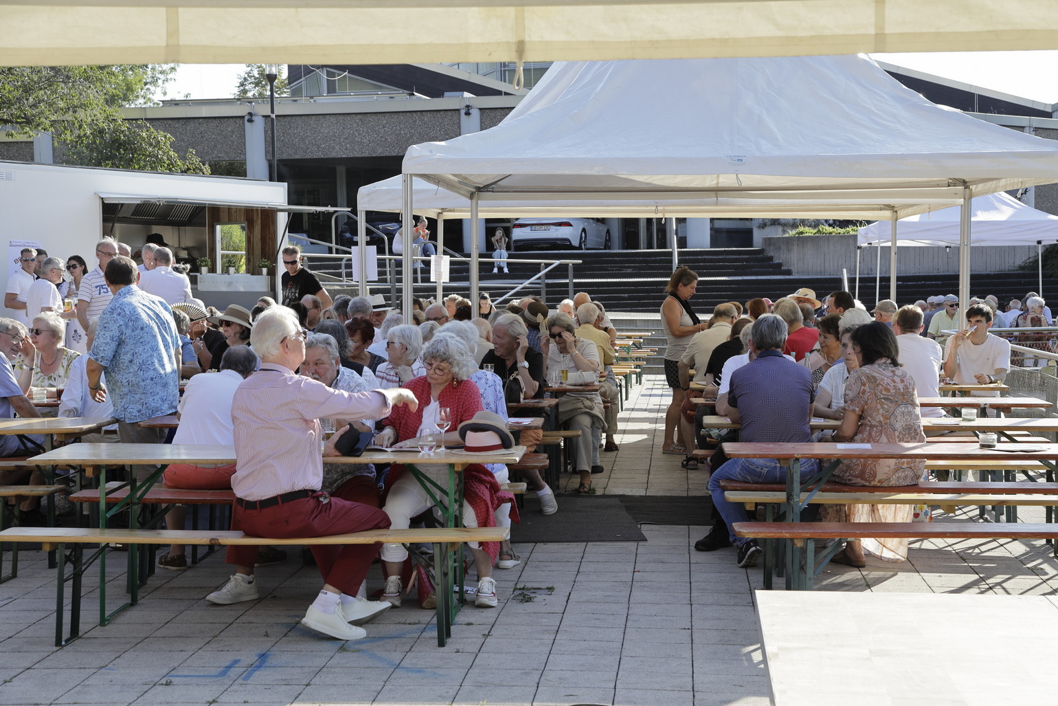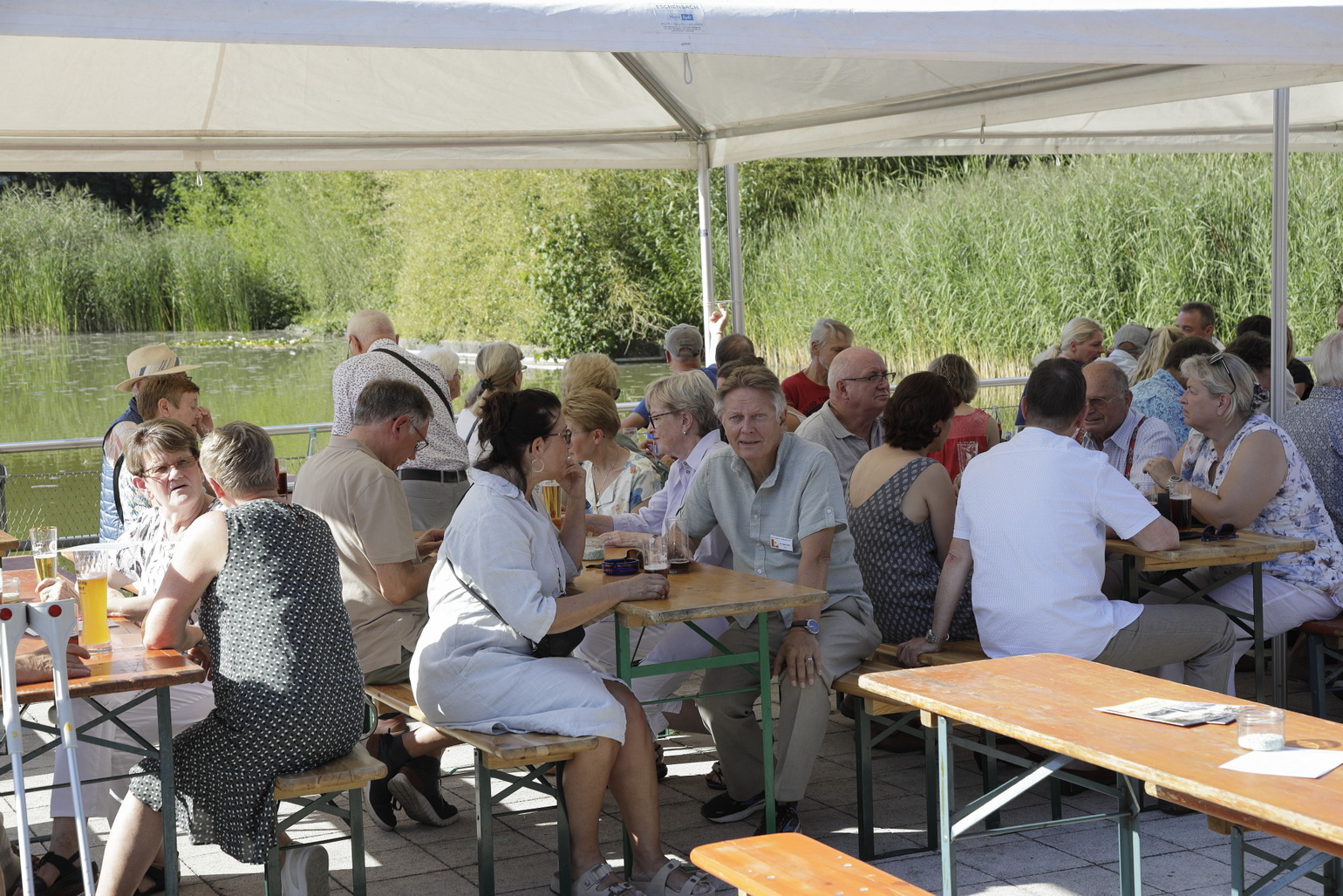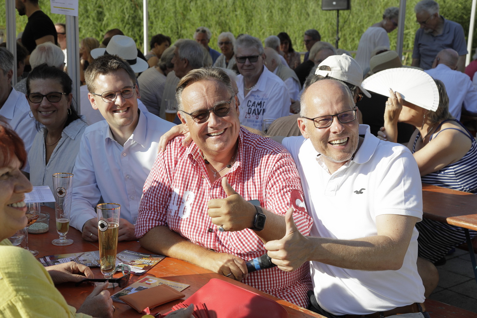 Die Tische und Bänke unter den Pagodenzelten, die allesamt das Brasselkommando der Jonges am Vormittag aufgestellt hatte, waren durchweg gut besetzt und so konnten die Gäste unter freiem Himmel das tun, wofür das Biwak auch gedacht ist: sich sehen, sich treffen, miteinander ins Gespräch kommen. Nirgends können sich Bürger und Persönlichkeiten aus Politik, Wirtschaft und Vereinsleben so ungezwungen miteinander austauschen – ob Bundestagsabgeordneter Peter Beyer, die stellvertretenden Bürgermeister Ewald Vielhaus und Barbara Esser, Schützen- und Jungschützenkönig, und, und, und...