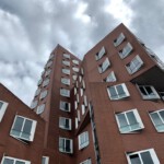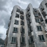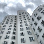 Hauptziel war bei der Rundfahrt der inzwischen berühmte Medienhafen mit den krummen und silbern schimmernden Gerrybauten, durch den es anschließen zu Fuß auf Exkursion ging.