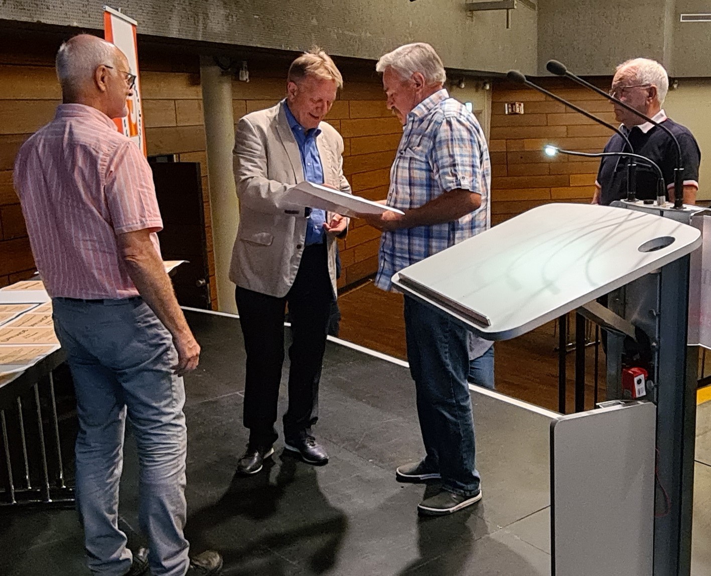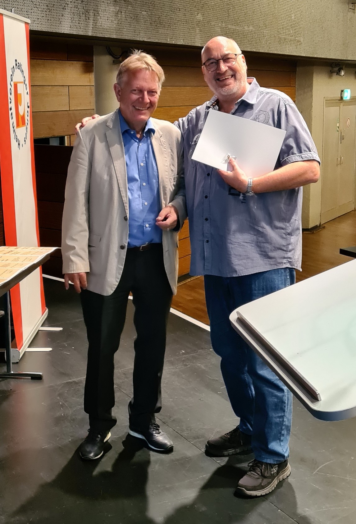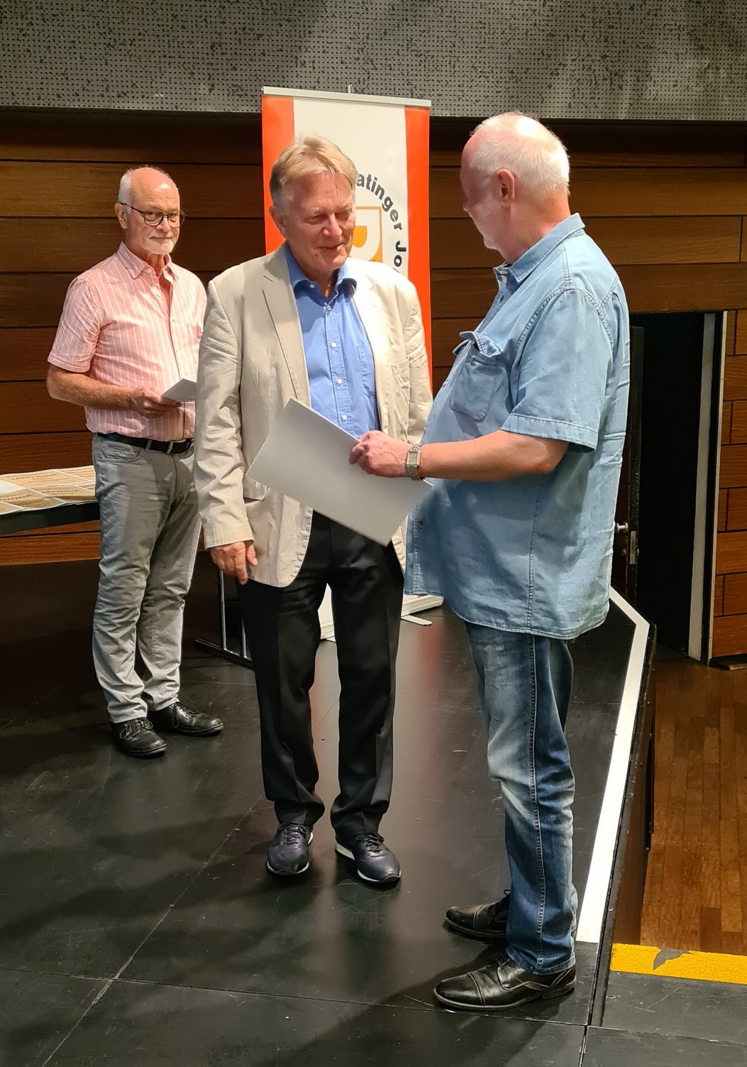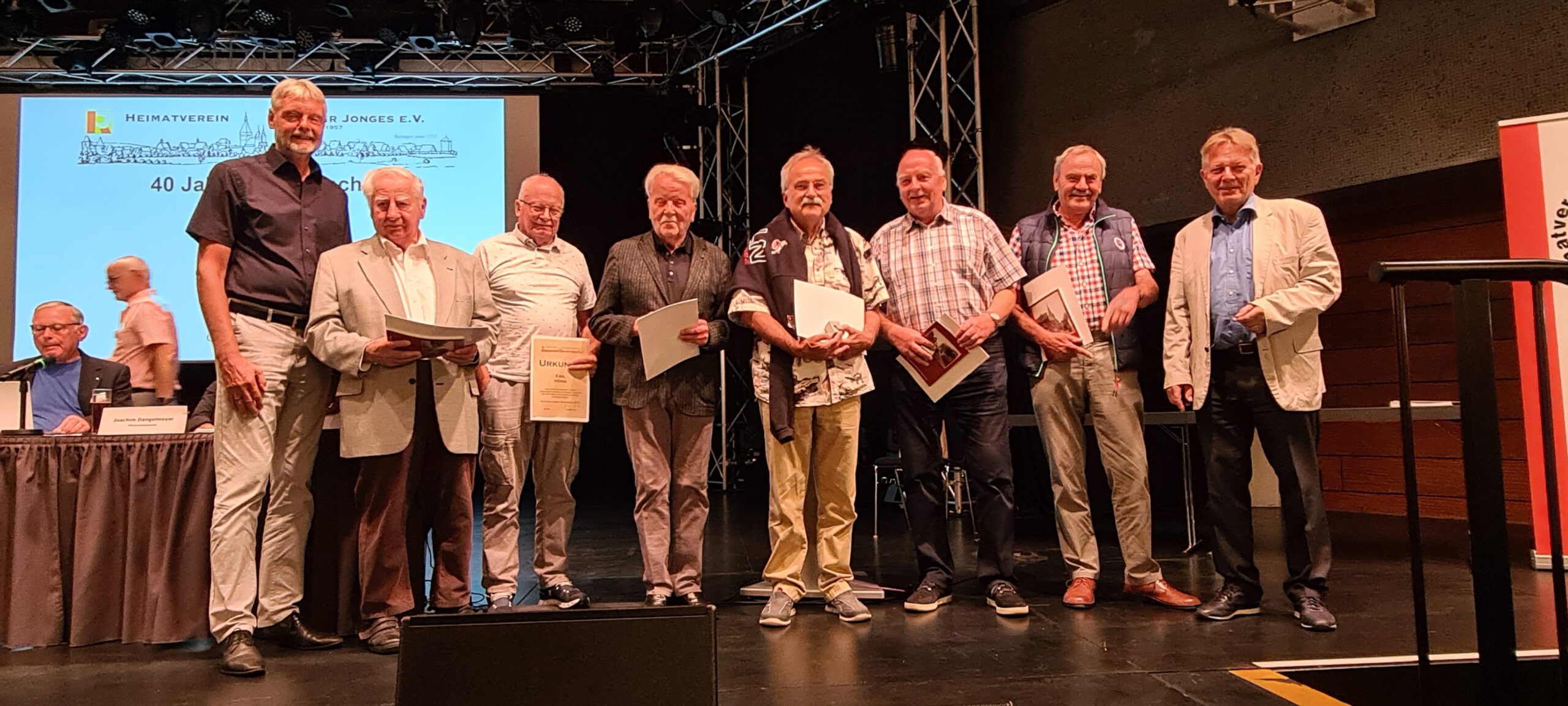 Genau 100 Mitglieder waren zur Herbstversammlung der Jonges in die Stadthalle gekommen, um Neuigkeiten aus dem Verein zu erfahren. Die Mitgliederzahl des Vereins konnte dank etlicher Neuzugänge in den vergangenen zwölf Monaten stabil gehalten werden und liegt aktuell bei 938. Erfreulich ist, dass die beliebten Veranstaltungen, Ausflüge und Touren wieder mit nahezu so großer Resonanz wie in Vor-Corona-Zeiten durchgeführt werden konnten: Ob die Bahnfahrt mit Railflex durchs Angertal, die Vier-Tages-Tour zur Meyer-Werft und nach Ostfriesland, das Jubiläum des Mundartkreises, Fahrten in den Landschaftspark Duisburg, zur Gesenkschmiede nach Solingen und zum Keukenhof, dazu Wanderungen, und Besichtigungen im Umland. Nicht zu vergessen das beliebte Turmfest, das Biwak an neuem Ort und als Premiere das Familienfest am Blauen See.