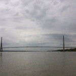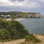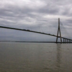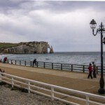 Der Dienstag begann mit einem Rundgang durch Honfleur. Diesmal blieben Schafe und Leithammel schön beieinander und bis zum Kai, wo das Ausflugsschiff wartete, ging keiner verloren. Mit dem Schiff ging es dann auf der Seinemündung zweimal unter der Schrägseilbrücke Pont de Normandie mit 856m Spannweite hindurch. 52m ist die Durchfahrtshöhe. 110m ist die Höhe der Alabaster Klippen in Etretat oder 30 Stockwerke nach iPhone. Die mussten erst einmal bestiegen werden. Wolfgang machte sich eine Freude und bestieg die Klippen nach 30 Jahren erneut. Norbert, unser Busfahrer hatte weniger Freude mit der Polizei. Wenn der französische Staat kein Einsehen hat, hätte er 4,20€ pro Minute Parkzeit zu zahlen!