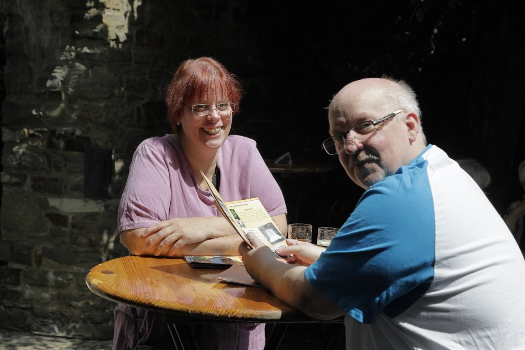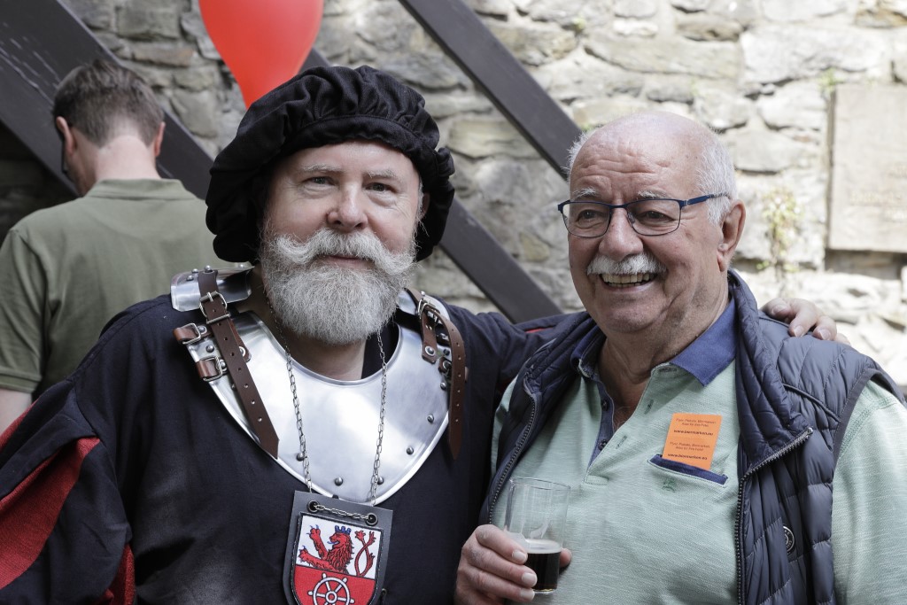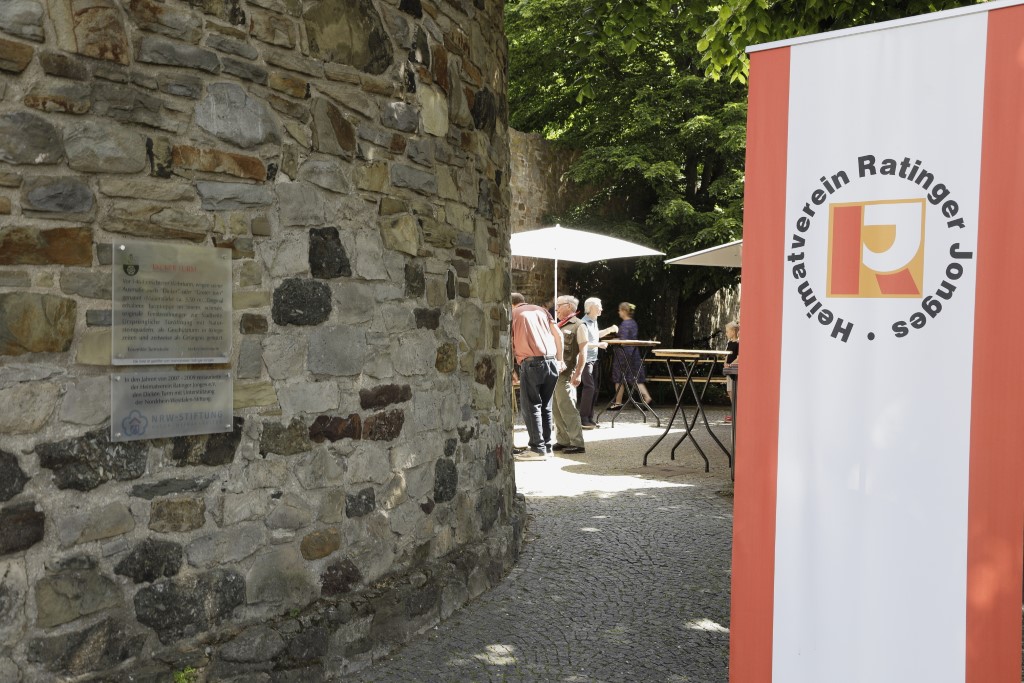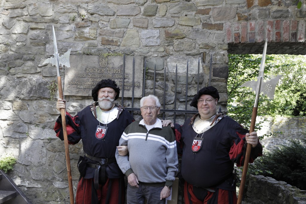 Besonders gefragt waren die Führungen durch den Dicken Turm. Die Jonges Oliver Posberg und Heinz-Werner Blumenkamp – beide als historische Turmwächter gekleidet – erklärten den Besuchern nicht nur die Geschichte des ältesten und mächtigsten Ratinger Wachturms, sondern schilderten auch anschaulich dessen aufwendige Sanierung und bauliche Besonderheiten - angereichert mit viel Wissenswertem aus der Ratinger Stadtgeschichte. Zwischendurch erzählten Mitglieder des Mundartkreises verschiedene Dönkes auf Platt.
