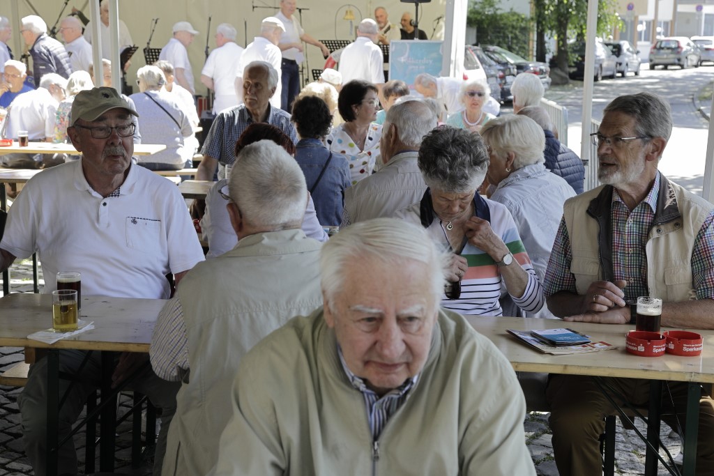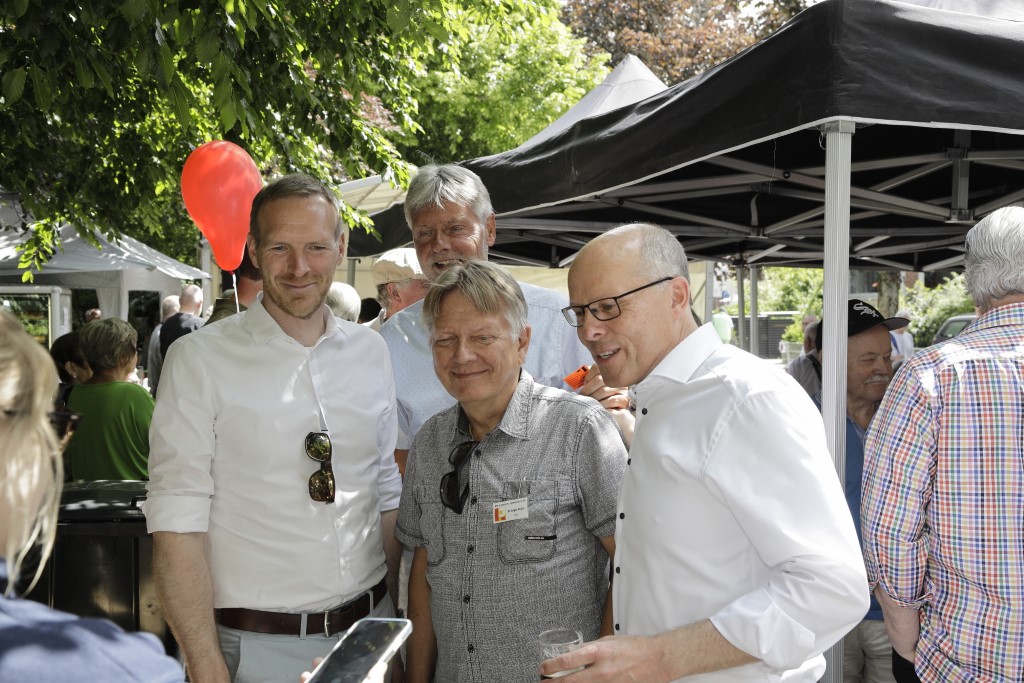 Es passte wirklich alles. Das Turmfest der Ratinger Jonges präsentierte sich wie aus einem Katalog „Gelungene Veranstaltungen‟. Das Wetter war sonnig und warm, das Interesse in der Bevölkerung nach der Corona-Zwangspause groß, dazu abwechslungsreiche Musikunterhaltung, leckere Beköstigung und viele Besucher, die miteinander ins Gespräch kamen. Neben lokaler Politprominenz und Vertretern von Vereinen, Verbänden und Wirtschaft feierten vor allem die Ratinger Bürgerinnen und Bürger mit den Jonges: Die Sitzbänke im Schatten des Dicken Turms waren durchgängig belegt  – auch ein Zeichen dafür, wie sehr der Heimatverein in der Gesellschaft verwurzelt ist. „Man merkt schon deutlich, dass den Leuten so etwas gefehlt hat‟, sagte Ex-Prinz und Ex-Schützenkönig Wolfgang Scholz.