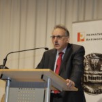 In seiner unterhaltsamen und kurzweiligen Laudatio zeichnete Dr. Klaus Wisotzky den Lebensweg und das vielfältige Wirken Töpfers nach. Er sprach von der Bedeutung der „Erinnerungsarbeit‟, „traditionellen sozialen Milieus, die Halt geben‟, von „Geborgenheit und Heimat‟ und „Identifikation mit der Stadt‟ – all das träfe auf Andrea Töpfer zu: In Ratingen geboren, übers Elternhaus mit dem heimischen Brauchtum und Sport verbunden, sie war Klassensprecherin, Kinderprinzessin und in der Dekanatsjugend engagiert – kurzum: tief verwurzelt in der Stadtgesellschaft. „Nur wer weiß, wer mit wem verwandt oder verschwägert ist, kann die Ratinger Stadtgeschichte verstehen‟, stellte Wisotzky augenzwinkernd fest, der zustimmende Applaus im Saal gab ihm Recht.
