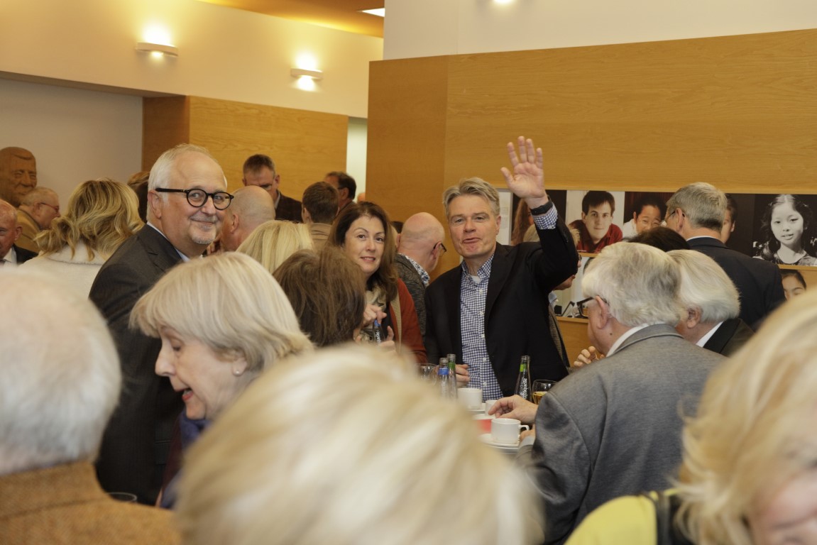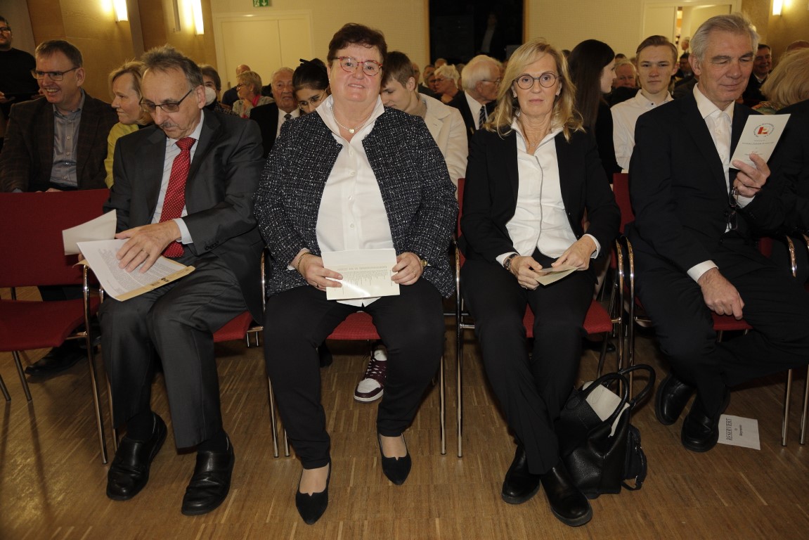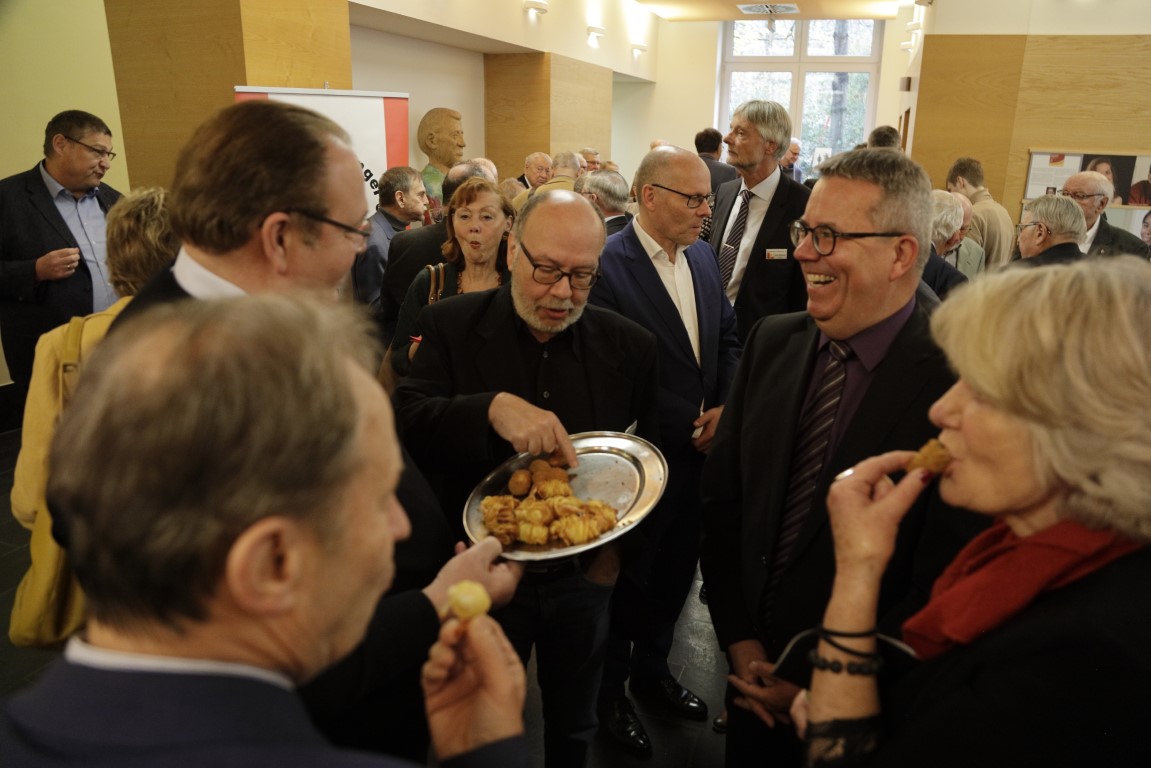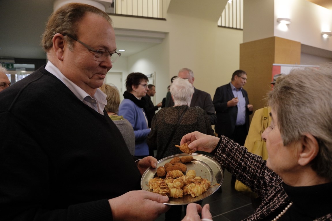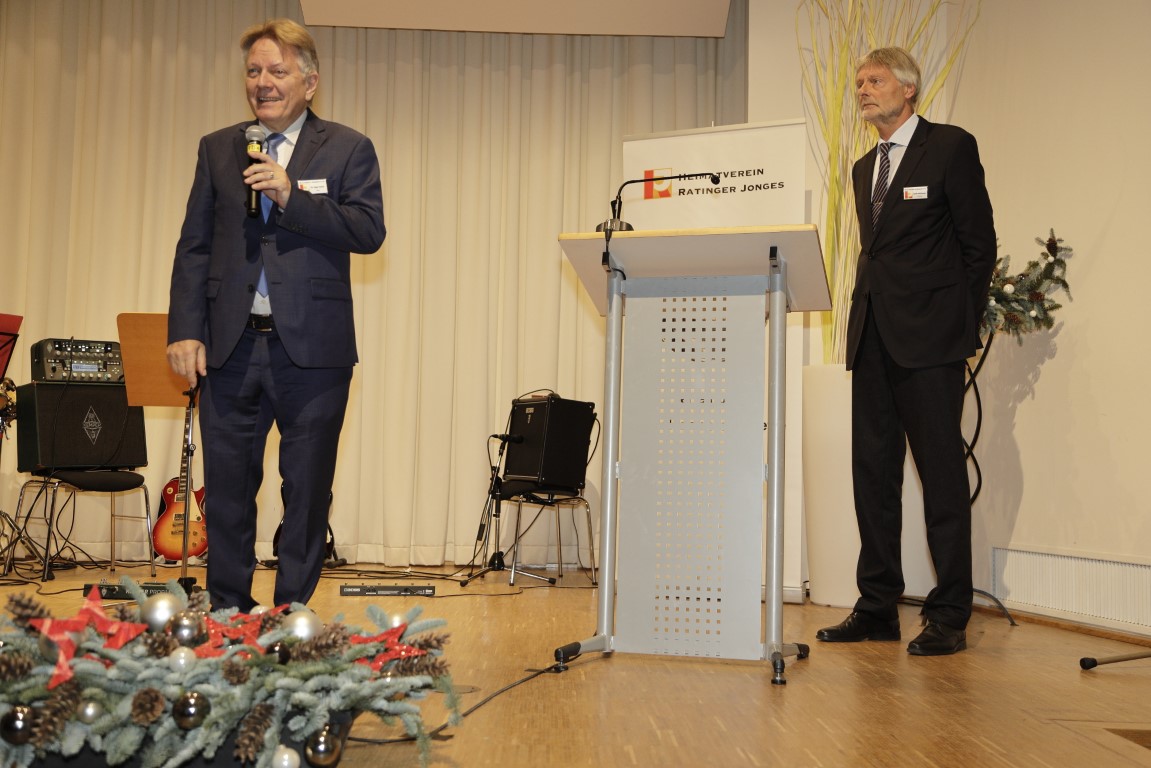 In seiner unterhaltsamen und kurzweiligen Laudatio zeichnete Dr. Klaus Wisotzky den Lebensweg und das vielfältige Wirken Töpfers nach. Er sprach von der Bedeutung der „Erinnerungsarbeit‟, „traditionellen sozialen Milieus, die Halt geben‟, von „Geborgenheit und Heimat‟ und „Identifikation mit der Stadt‟ – all das träfe auf Andrea Töpfer zu: In Ratingen geboren, übers Elternhaus mit dem heimischen Brauchtum und Sport verbunden, sie war Klassensprecherin, Kinderprinzessin und in der Dekanatsjugend engagiert – kurzum: tief verwurzelt in der Stadtgesellschaft. „Nur wer weiß, wer mit wem verwandt oder verschwägert ist, kann die Ratinger Stadtgeschichte verstehen‟, stellte Wisotzky augenzwinkernd fest, der zustimmende Applaus im Saal gab ihm Recht.