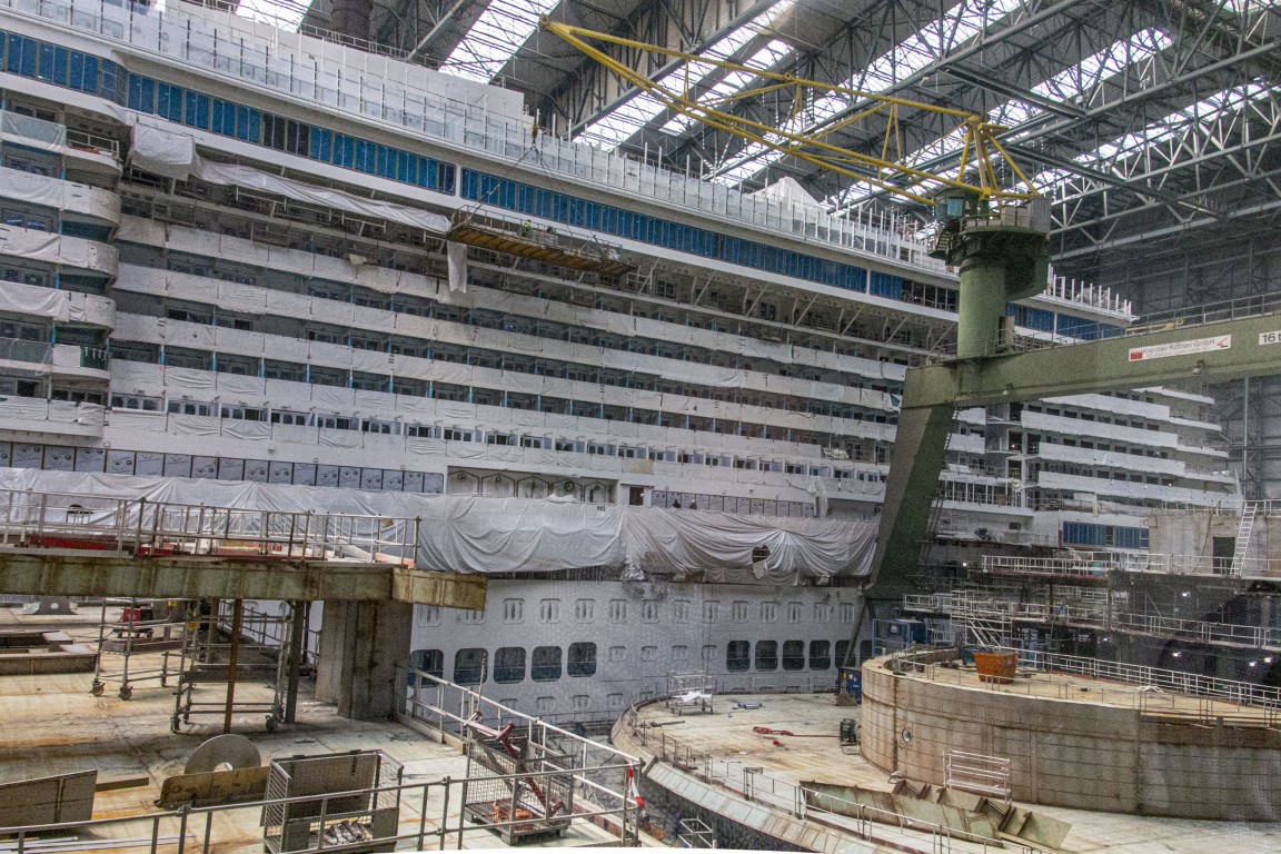 Das natürlich aber auch eine Besichtigung der berühmten Werft auf dem Programm stand, versteht sich von selbst, wobei beim Rundgang durch die Hallen der schon weit fortgeschrittene Bau der ARIVA für die britische Reederei P&O Cruises für 6.600 Passagiere sowie die dagegen Mini wirkende SILVER NOVA der Silversea Cruises für nur 728 Passagiere bestaunt werden konnten.