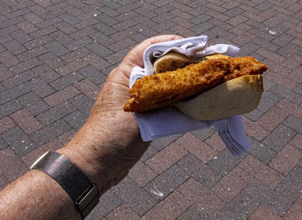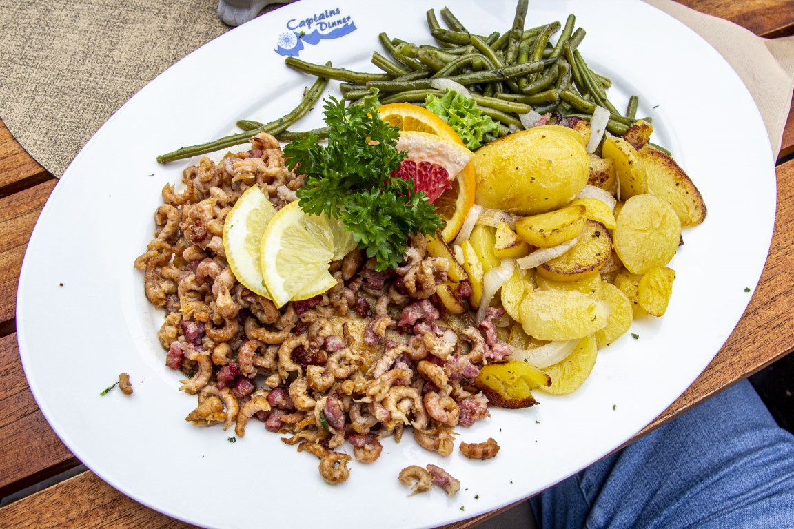 Danach erfolgte ein Abstecher an die Küste nach Neuharlingersiel. Herzstück des 300 Jahre alten Fischerdorfes ist der Hafen, den jeder bei einem individuellen Rundgang bei einer angenehmen Temperatur von 23 Grad die Mittagszeit genießen konnte, während zu Hause alle bei eigentlich hochsommerlichen Temperaturen von 34 °C schwitzten und litten. Und wenn man schon am Meer ist, dann gehören natürlich auch das Backfischbrötchen, Kibbelinge, Matjesbrötchen und auch Backfisch mit Pommes dazu, weshalb dann auch sogleich die Fischbude an Hafen gestürmt wurde.