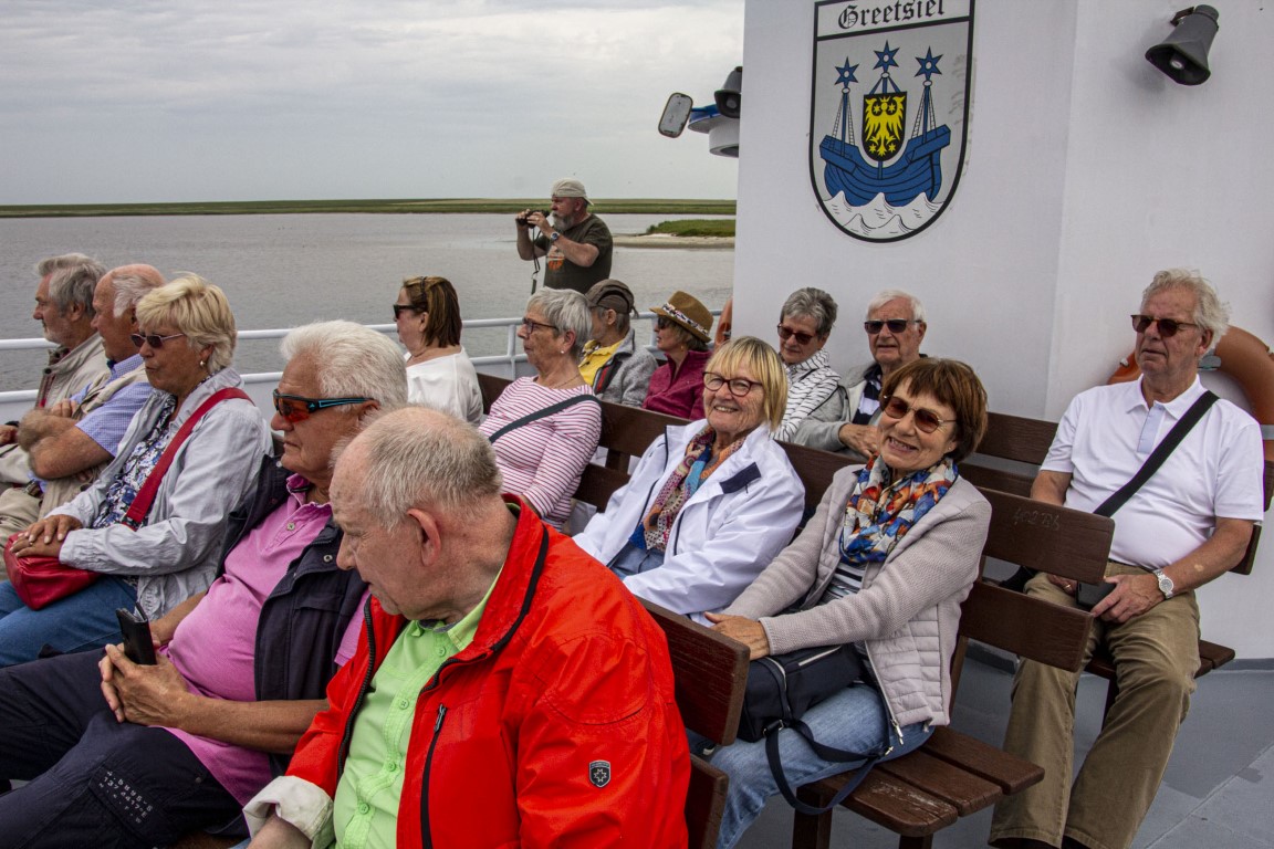 Anschließend ging es weiter zum Fischer- und Künstlerdorf Greetsiel. Nachdem zuerst jeder den Ort auf eigene Weise für sich entdecken konnte, ging es an Bord des Fahrgastschiffes Graf Edzard I., mit dem wir knapp 2 Stunden ab Hafen Greetsiel durch das Naturschutzgebiet Leyhörn zur Schleuse Leysiel und zurück kreuzten und dabei wieder für eine positive Stimmung bei den Teilnehmern sorgte. Und weil Seeluft bekanntlich hungrig macht, waren Kaffee bzw. Tee und Kuchen an Bord inklusiv.