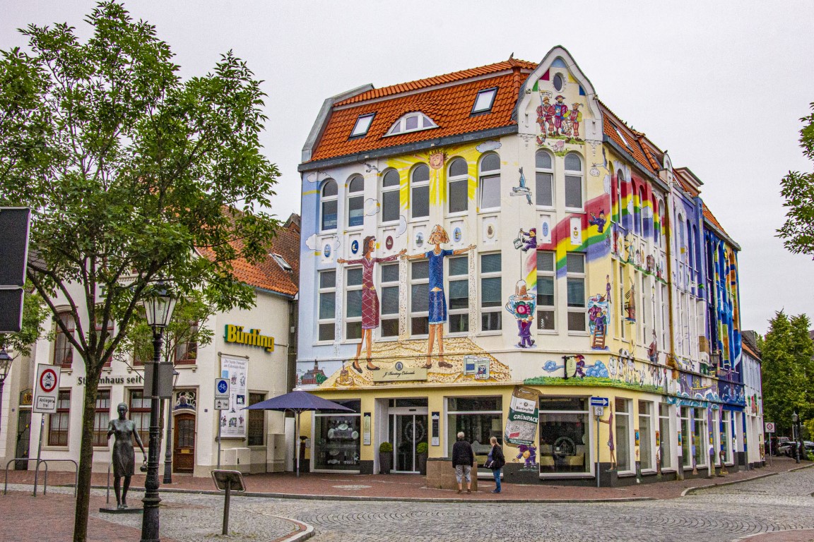 Abschluss der Reise bildete nur wenige Kilometer weiter dann ein individueller Rundgang durch die historische Altstadt von Leer, wobei neben den Fassaden aus alten Zeiten besonders die sehr interessant gestaltete Gebäudefassade von Bünting Tee ins Auge fällt.