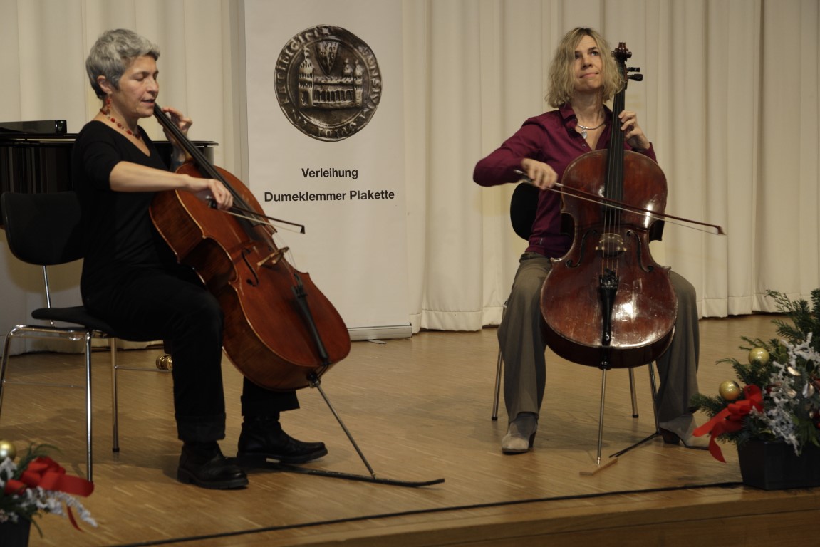 Für den musikalischen Rahmen sorgten ehemalige Mitglieder des Ratinger Kinder- und Jugendchores sowie ein Cello-Duo aus Musikschullehrerinnen.