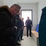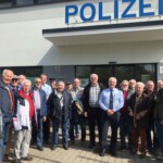 Schon vor Beginn der eigentlichen Führung durch die Wache der Ratinger Polizei an der Josef-Schappe-Straße wurden die Gruppen draußen vom Leiter der Wache und Erster Polizeihauptkommissar Frank Bauernfeind und seinem Stellvertreter Hauptkommissar Herrn Steffen herzlich begrüßt und anschließend darauf eingewiesen, was sie drinnen erwartet und was aus Schutzgründen nicht gemacht oder fotografiert werden darf.