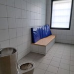 Dann ging es auch sogleich in den Knast, der hier aus dem separat gesicherten Zugang und drei Einzelzellen besteht, wobei eine Zelle einem eventuellen Randalierer vorbehalten ist, der dort zum Schutz aller – einschließlich seiner selbst - auch angekettet werden kann.
