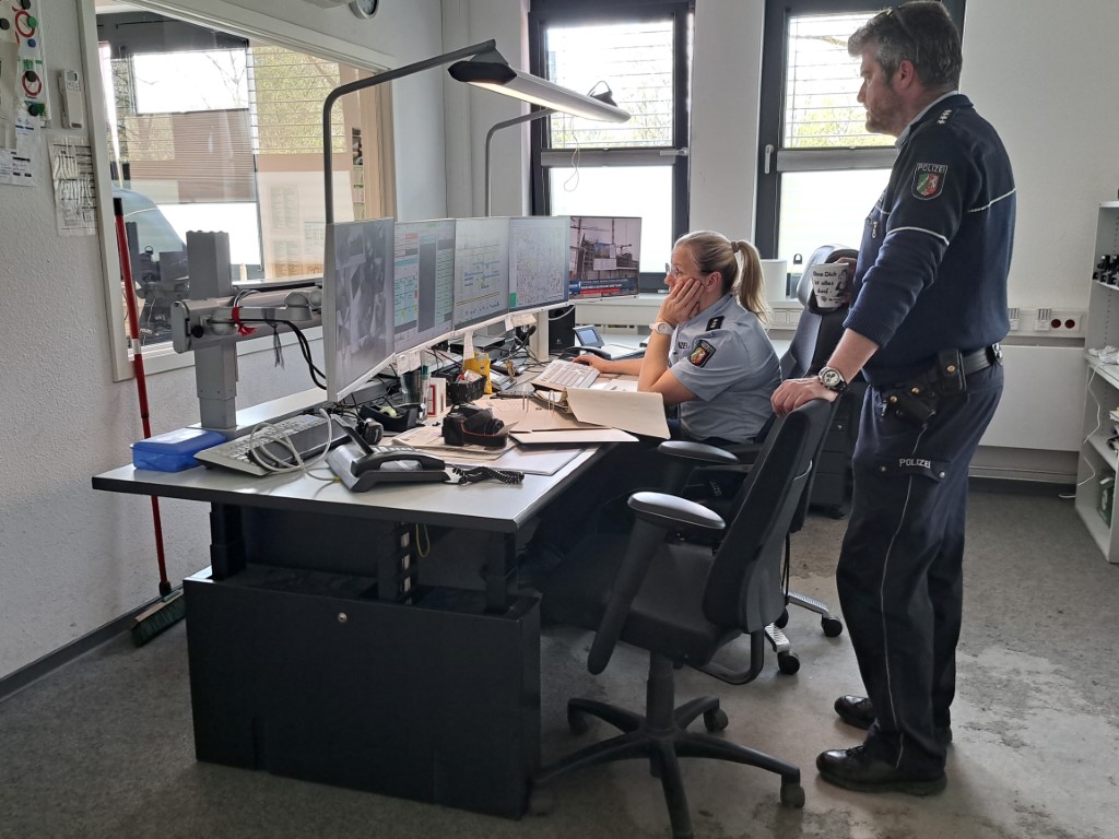 Weitere Stationen der Führung ist der Raum für die Blutabnahme und Aufbewahrung von eventuell notwendigen Urintests bei Drogenverdacht, und die Leitstelle, in der alle Notrufe der 110 eingehen und, wenn notwendig, sogleich an den schichtverantwortlichen Hauptkommissar gemeldet und an die eventuell in der Nähe befindlichen Polizeiwagen weitergeleitet werden.