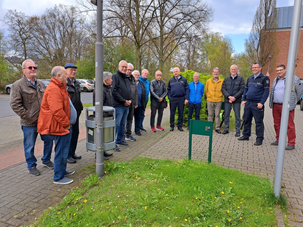 Schon vor Beginn der eigentlichen Führung durch die Wache der Ratinger Polizei an der Josef-Schappe-Straße wurden die Gruppen draußen vom Leiter der Wache und Erster Polizeihauptkommissar Frank Bauernfeind und seinem Stellvertreter Hauptkommissar Herrn Steffen herzlich begrüßt und anschließend darauf eingewiesen, was sie drinnen erwartet und was aus Schutzgründen nicht gemacht oder fotografiert werden darf.