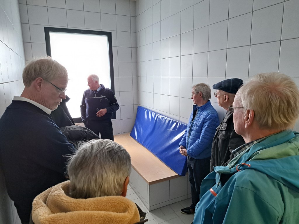 Hier, wie auch bei allen bisherigen Stationen erhielten die Gruppen umfangreiche Erläuterungen und wurden alle Fragen gut Beantwortet. Das passiert auch zum Abschluss der Führung, in dem die Teilnehmer noch in den eigentlichen Besprechungsraum geführt werden und dort von der Seele der Wache, Frau Schotten, mit Kaffee und Plätzchen sowie mit sehr leckeren Kuchen versorgt werden und die reichlichen Fragen der Jonges sehr ausgiebig beantwortet wurden, sodass die Besuche in der Wache länger als gedacht dauerten.