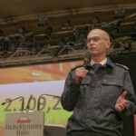 Erfreulich ist, dass die beliebten Veranstaltungen, Ausflüge und Touren wieder auf sehr große Resonanz gestoßen sind. Manche Veranstaltungen waren sogar überbucht und erforderten eine Warteliste: Ob Nachtwächtertour durch Ratingen, Tagesfahrt nach Maastricht (geplant für 40, durchgeführt mit 80 Teilnehmern), Vier-Tages-Tour durch die Ardennen und nach Brüssel, Herbstfahrt nach Venetien, Ausflüge, Wanderungen und Besichtigungen (Polizeiwache, Landtag, Mitsubishi) und mehr. Nicht zu vergessen das beliebte Biwak auf der Seeterrasse neben der Stadthalle und der gut besuchte Mundartabend jüngst im Brauhaus. Gut etabliert haben sich auch die Jonges-Abende alle zwei Monate im Bürgerheus mit Referenten zu aktuellen Themen. Nach dem Überblick über die Aktivitäten überreichte  Baas Edgar Dullni einen Scheck über 2109 Euro an Feuerwehrchef René Schubert – Ergebnis einer Sammelaktion auf dem Biwak zugunsten der schwer verletzten Rettungskräfte, deren Betrag von den Jonges anschließend verdoppelt wurde.