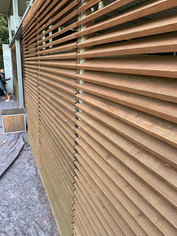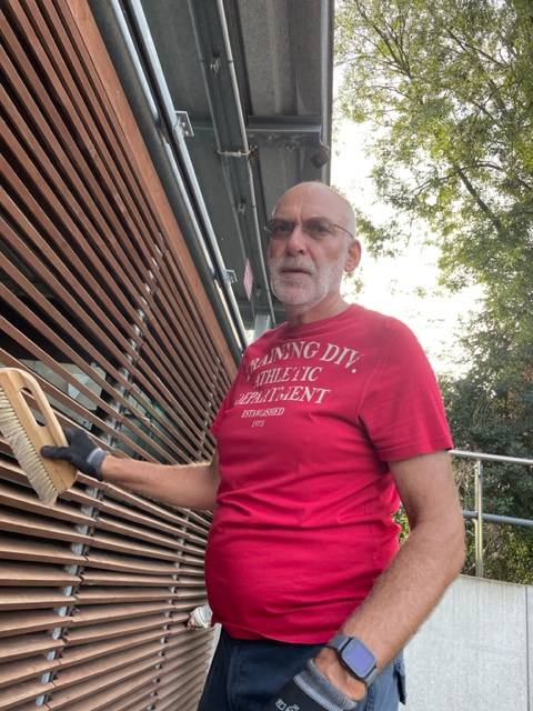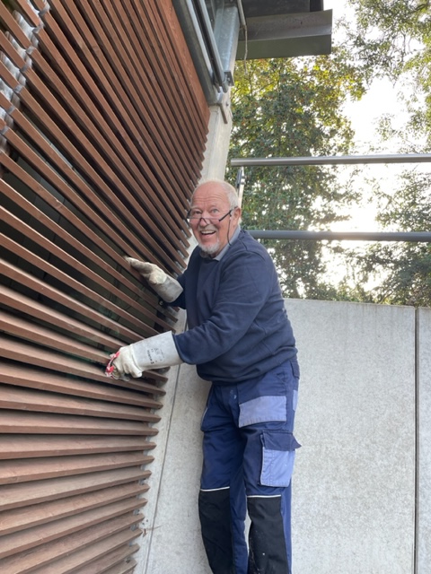 Getreu diesem Motto hat eine Gruppe Ratinger Jonges den großen Veranstaltungspavillon an der Seeterrasse neben der Stadthalle in einer Renovieraktion optisch wieder aufgemöbelt. Die braunen Holzlamellen der Seitenwände des Pavillons wurden von Hand abgeschliffen und dann neu gestrichen. „Bei unserem Biwak im August war uns aufgefallen, dass das Holz schon arg verwittert und kaum noch Farbe drauf war‟, sagt Jonges-Baas Edgar Dullni. Spontan sei damals die Idee entstanden, in einer Gemeinschaftsaktion die Lamellen neu zu streichen, damit sie wieder auf Jahre hinaus ansehnlich und wetterfest werden. „Und wir könnten – getreu unserem Vereinsmotto – so auch der Stadtgemeinschaft wieder etwas Gutes tun.‟