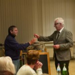 Anschließend erklärte Herr Hendele noch die Arbeit der Kreisverwaltung und auch seine Tätigkeit als Landrat, bevor er die diversen Fragen der Jonges beantwortete und zum Schluss kräftigen Applaus aller Teilnehmer dafür erhielt. Zum Dank für die Einladung und für den Vortrag erhielt Herr Hendele vom Reisebaas auch noch ein Fläschchen „Alter Hildener“ Korn, den er gerne annahm, da er selber aus Hilden stammt.