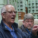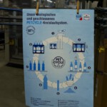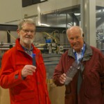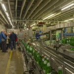 Anschließend ging es weiter in die Produktionshalle, in der alle Teilnehmer staunend zuerst die Herstellung der PET-Flaschen beobachten können, die in rasanter Geschwindigkeit aus einem angelieferten Vorformling nach der Erwärmung zur endgültigen Größe aufgeblasen werden (Blasformverfahren), um anschließend über Hängeschienen zur Abfüllanlage weiter gefördert zu werden, wo wir den weiteren Prozessablauf beobachten durften. Auch hier läuft alles vollautomatisiert, wobei neben den PET-Flaschen auf separaten Bändern auch Glasflaschen nach dem Reinigen befüllt, verschlossen und etikettiert werden.