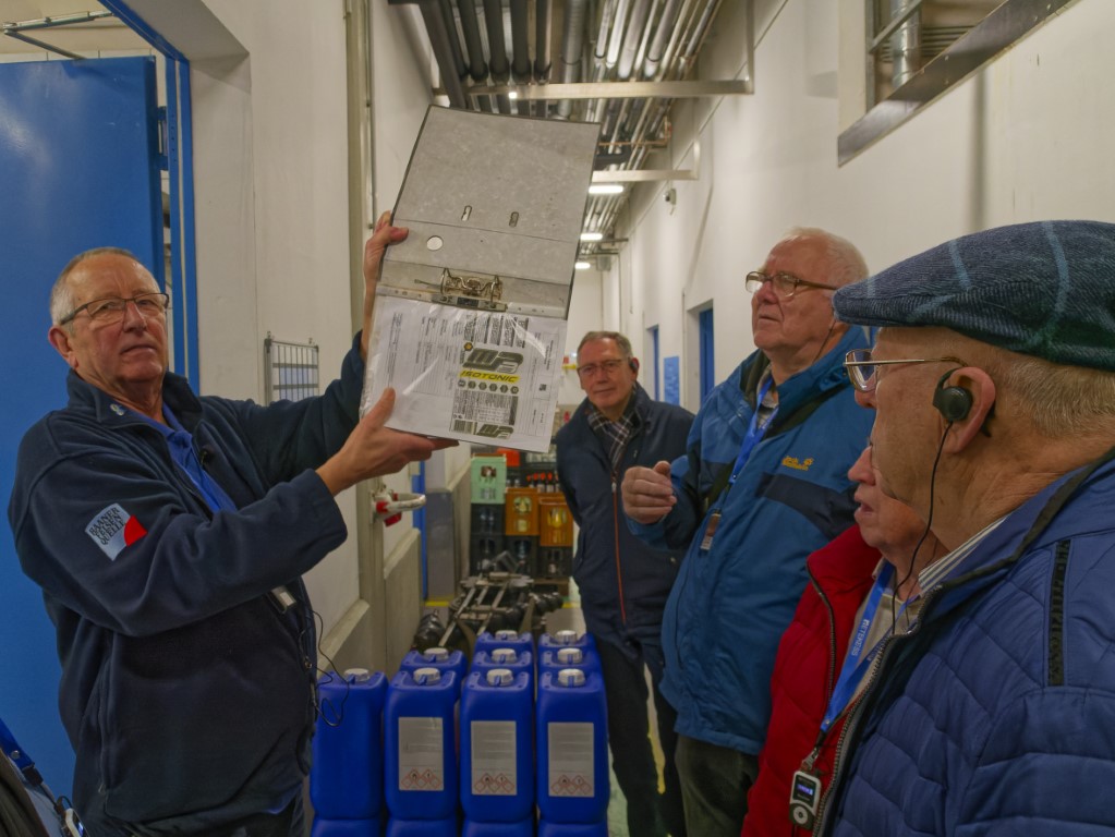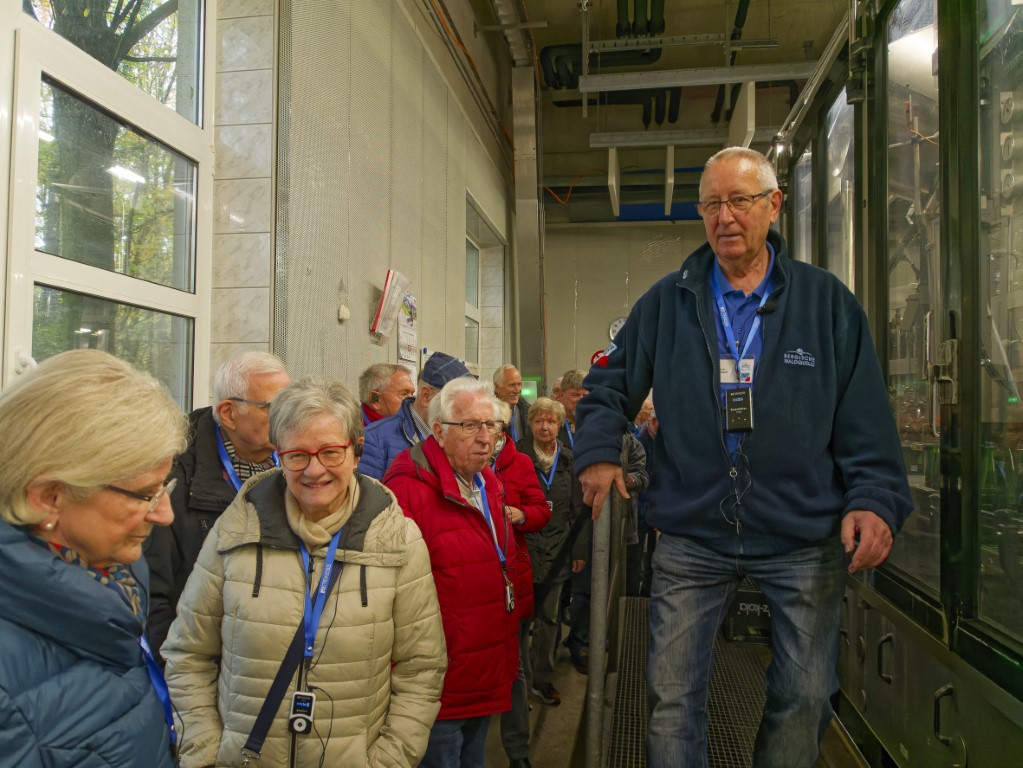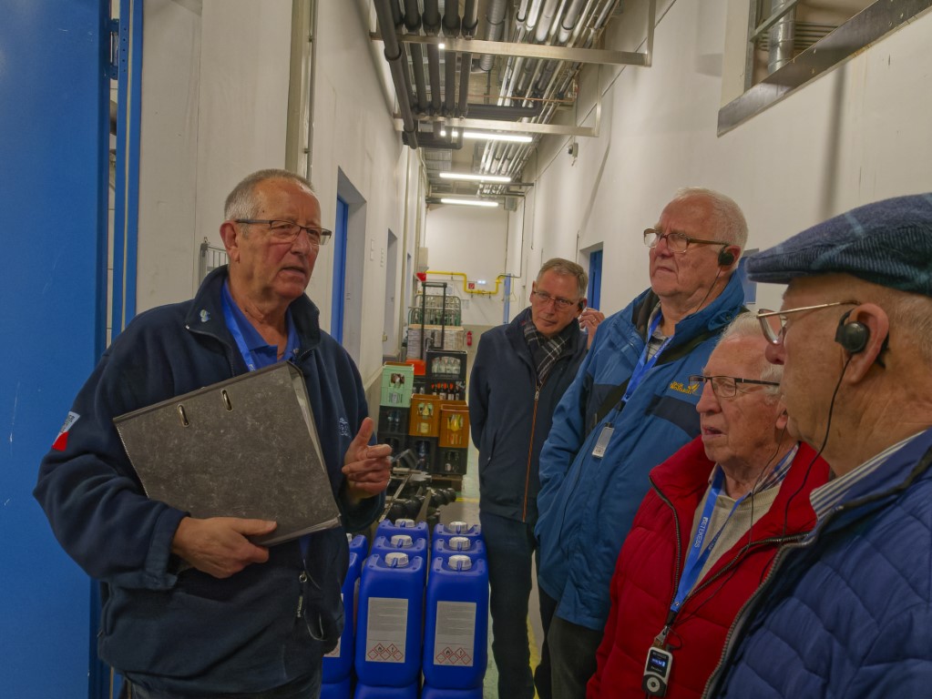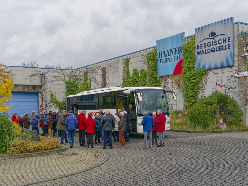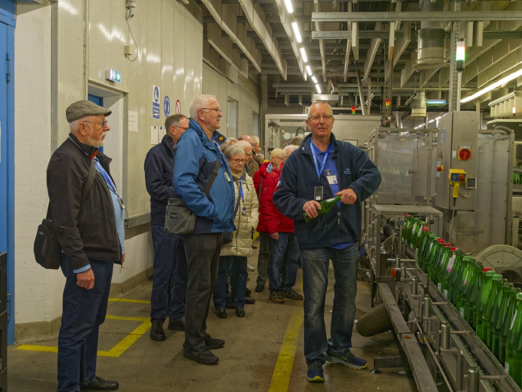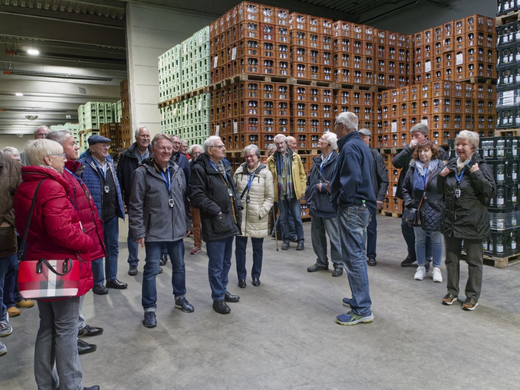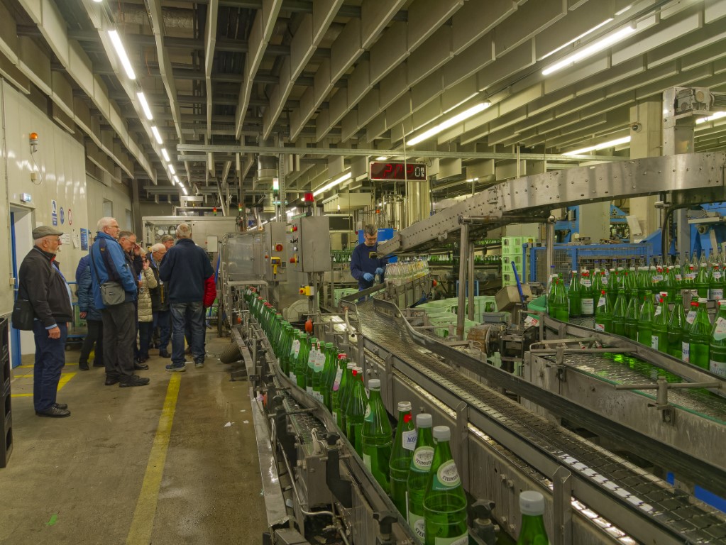 Nachdem die Jonges bereits 2020 die Ratinger Wasserwerke besucht hatten und daher wissen, wie das „jute Ratinger Wasser“ aufbereitet wird und anschließend in die Wohnungen der Einwohner gelangt, um dort als Kraneberger aus dem Wasserhahn zu fließen, wollten die Jonges mit Partnerinnen nun auch wissen, wie Wasser in Flaschen abgefüllt wird.