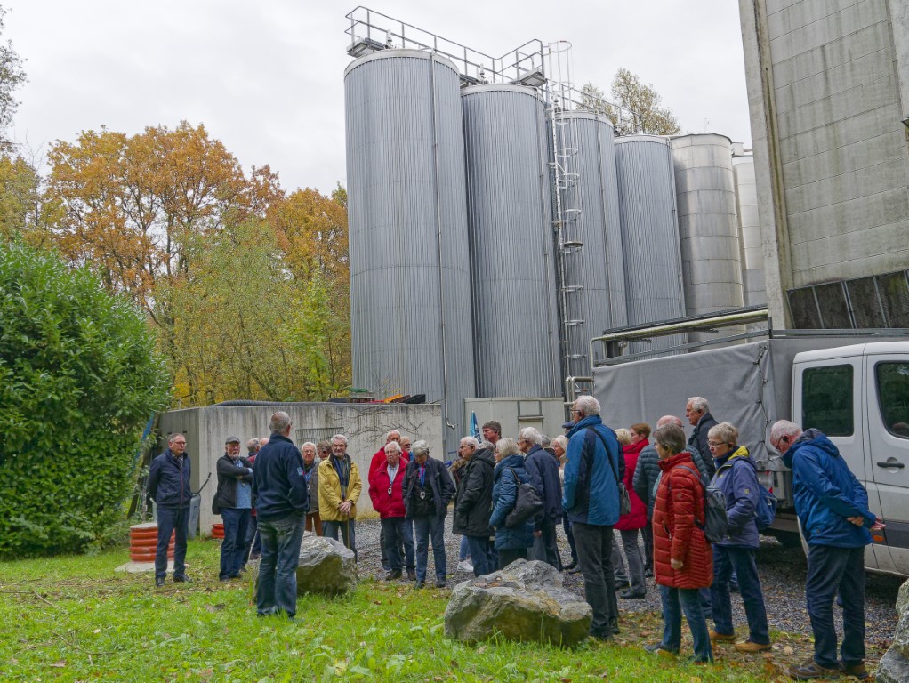 Dann folgte der für die Alkoholherstellung wichtigste Abschnitt „Gärung und Destillation“ mit dem Maischbottich, in dem der zuvor gemahlene Schrot mit Hilfe von Wärme und Hefe die Maische produziert wurde, aus der dann in den nachfolgenden Destillierapparaten bei der Trennung (Rektifikation) der hochprozentige Feinbrand und der Rücklauf entsteht. Bei diesem Prozess wurde durch zollamtliche Verplombungen sichergestellt, dass dem Staat kein Tropfen der später abzuführenden Alkoholsteuer entgeht. Dieser Prozess wurde vor Ort sehr anschaulich von unserem mitfahrenden Jong G. Falkenstein erklärt, der während seiner Dienstzeit beim Zoll auch die Plomben der damals noch produzierenden Kornbrennerei kontrollieren musste.