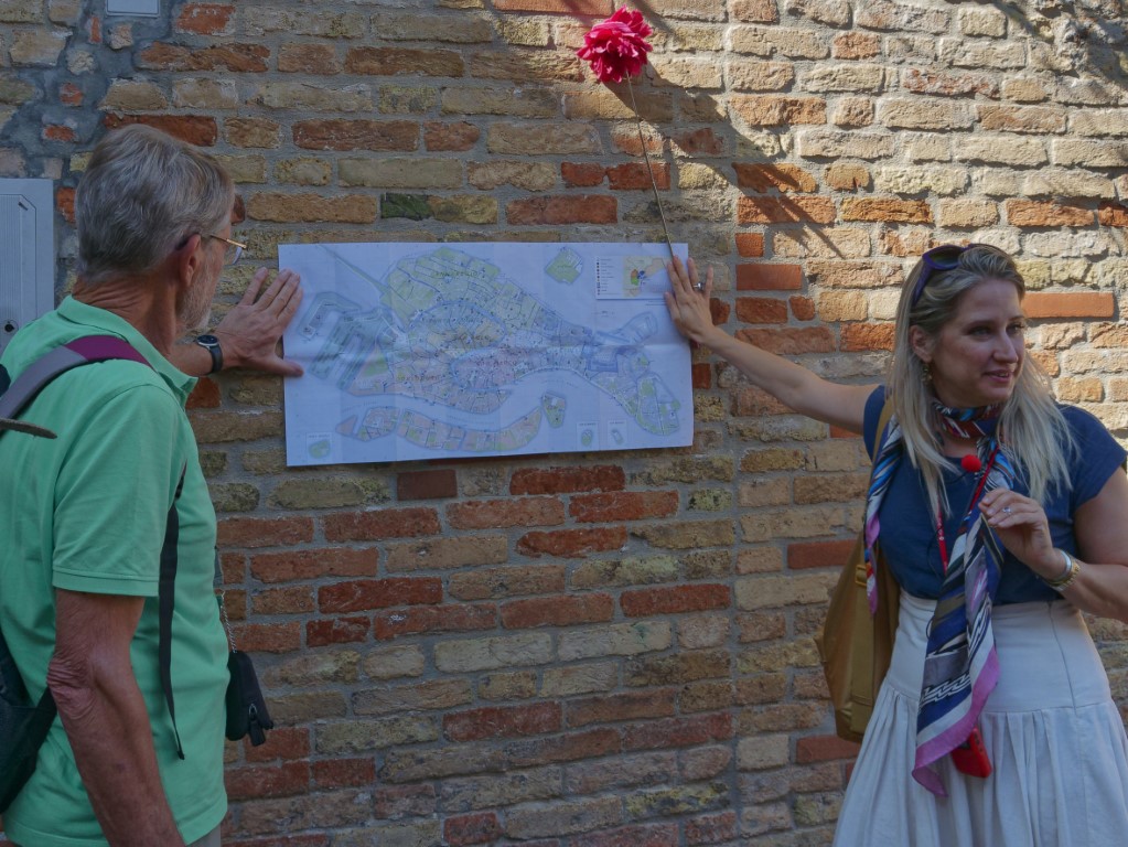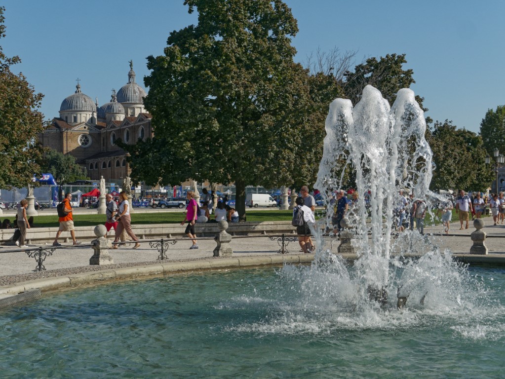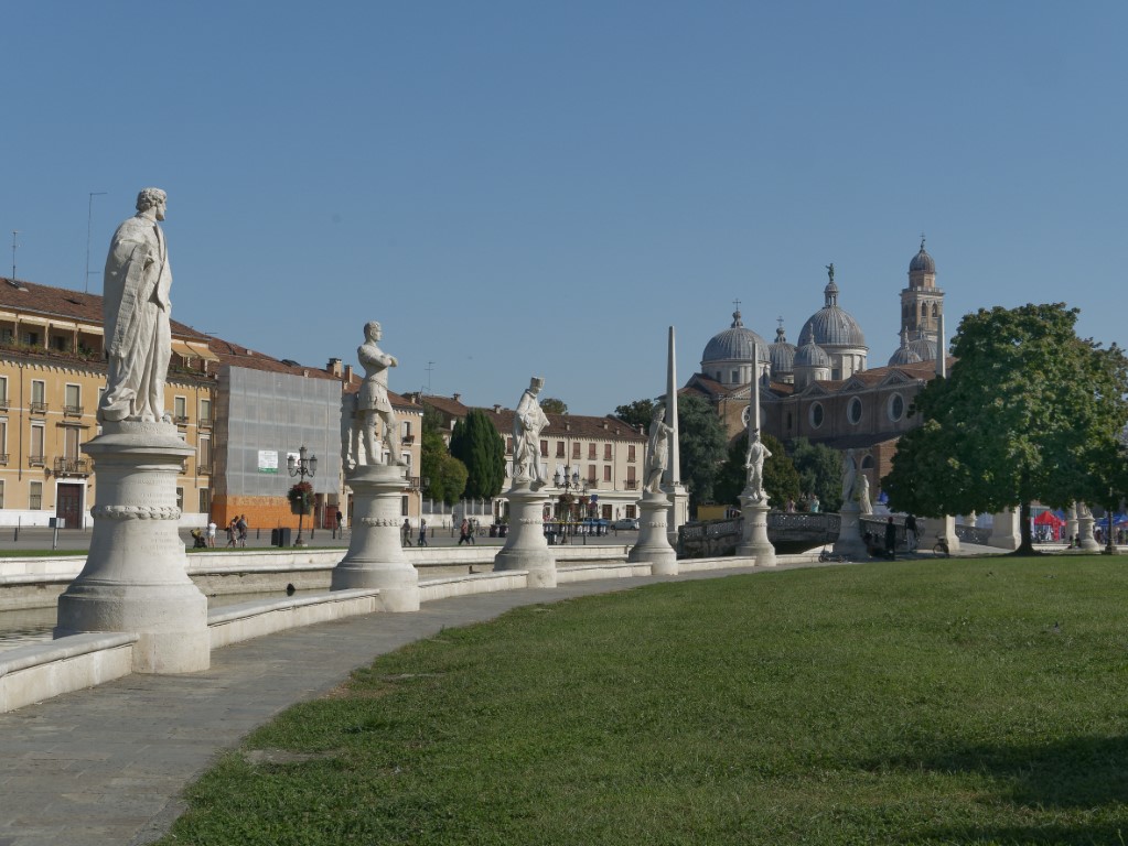Eine kleine Gruppe zog mit dem Reisebaas zu einem riesigen ovalen Platz unweit der Basilika. Der „Prato di Valle“ ist städtebaulich ein Platz, ein Park, eine autofreie Zone mit vielen Statuen und einem Ringkanal. Unter den Römern war er Exerzierplatz, heute gehört er den Spaziergängern.