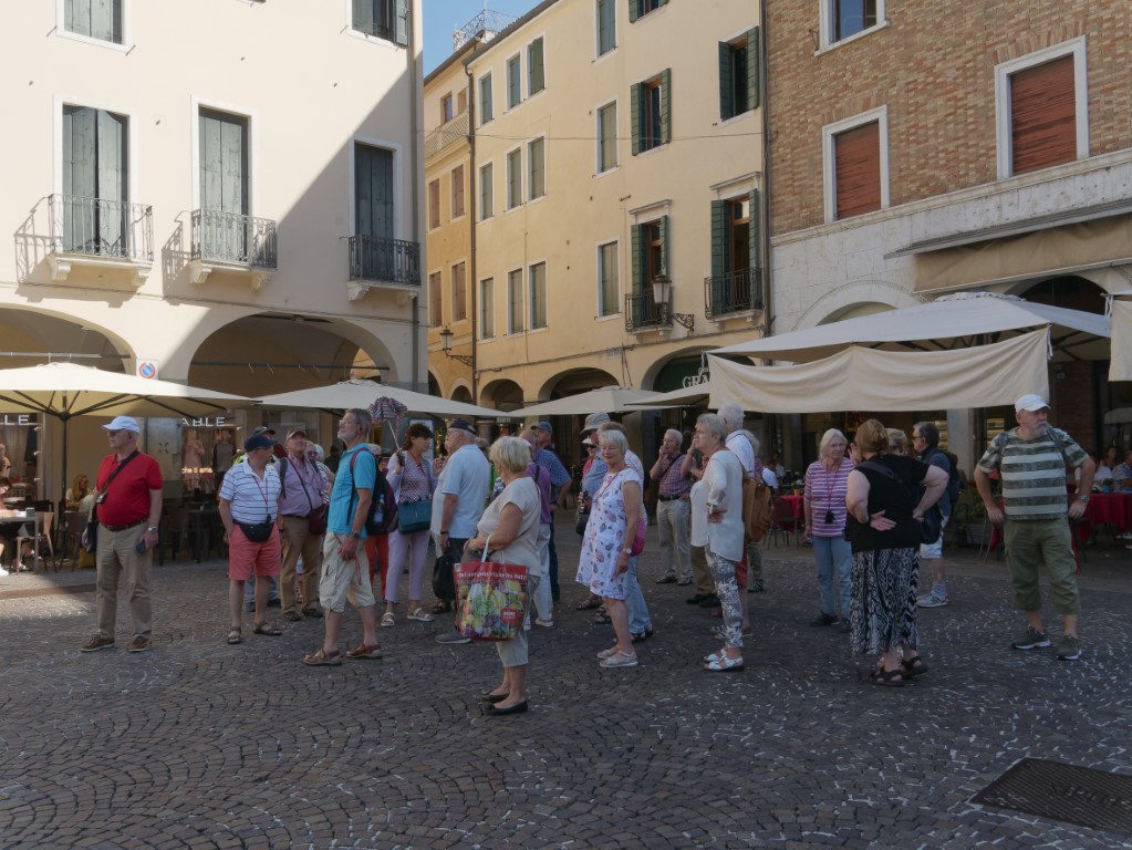 In Vicenza erwartete uns die Architektur von Andrea Palladio, einem Mann, der sich auf Prachtbauten spezialisiert hatte und der heute noch in der ganzen Welt nachgeahmt wird. Es gab da Türme, Paläste und Kirchen, eine Menge an herrlicher Architektur in einer Führung, bei der auch eine Klasse von Architekturstudenten auf ihre Kosten gekommen wäre. Am Ende waren wir alle ziemlich „kaputt“ - aber es war sehr interessant. Nach kurzer Fahrt erreichten wir wieder unser Hotel „Casa del Pellegrino“ in Padua.