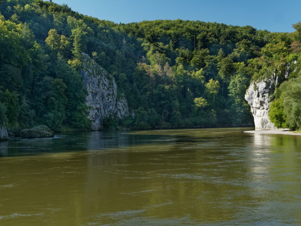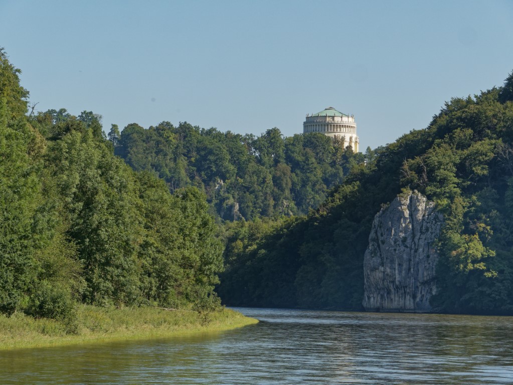 Zu einem Aufenthalt in Regensburg gehören unbedingt eine Fahrt auf der Donau und ein Besuch des Altmühltals. Mit dem Bus kamen wir nach Kelheim. Dort nahmen wir ein Schiff flussaufwärts durch das romantische Donautal, vorbei an der Befreiungshalle in Richtung Donaudurchbruch. Diese Halle erinnert an den Sieg über Napoleon. Sie ist prunkvoll wie die Walhalla, aber weniger bekannt. Und dann „sind wir über den Strudel gefahren“, am Durch-bruch der Donau durch den Oberjura. Der Fluss hat hier ein enges Tal von nur 80 m Breite in die Kreidefelsen genagt. An der engsten Stelle auf einem Felsvorsprung wacht hier der Hl. Nikolaus über das Wohl der Schiffer.