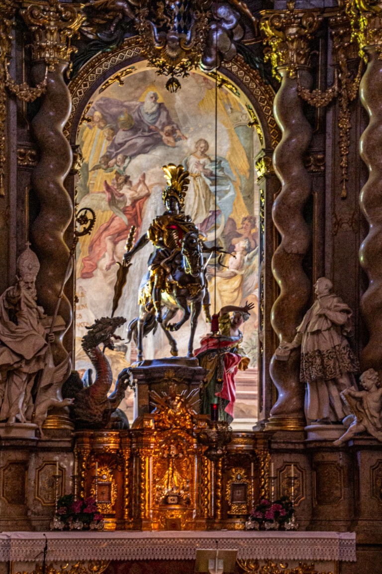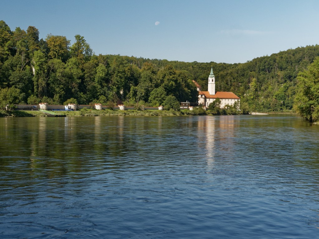 Die Donau hat dieses Tal fest im Griff. Überschwemmungen sind im wahrsten Sinne des Wortes an der Tagesordnung. Auch die Schifffahrt hat sich angepasst. Das hat aber im Mittelalter die Benediktiner nicht gehindert, unmittelbar am Donaudurchbruch das Kloster Weltenburg zu errichten. Neben der prächtigen, barocken Asam – Abteikirche gibt es hier auch die „älteste Klosterbrauerei der Welt“ in der seit 1050 gebraut wird. Unter Bäumen im Innenbezirk des Klosters konnten wir uns bei einem Bier ein wenig ausruhen.
