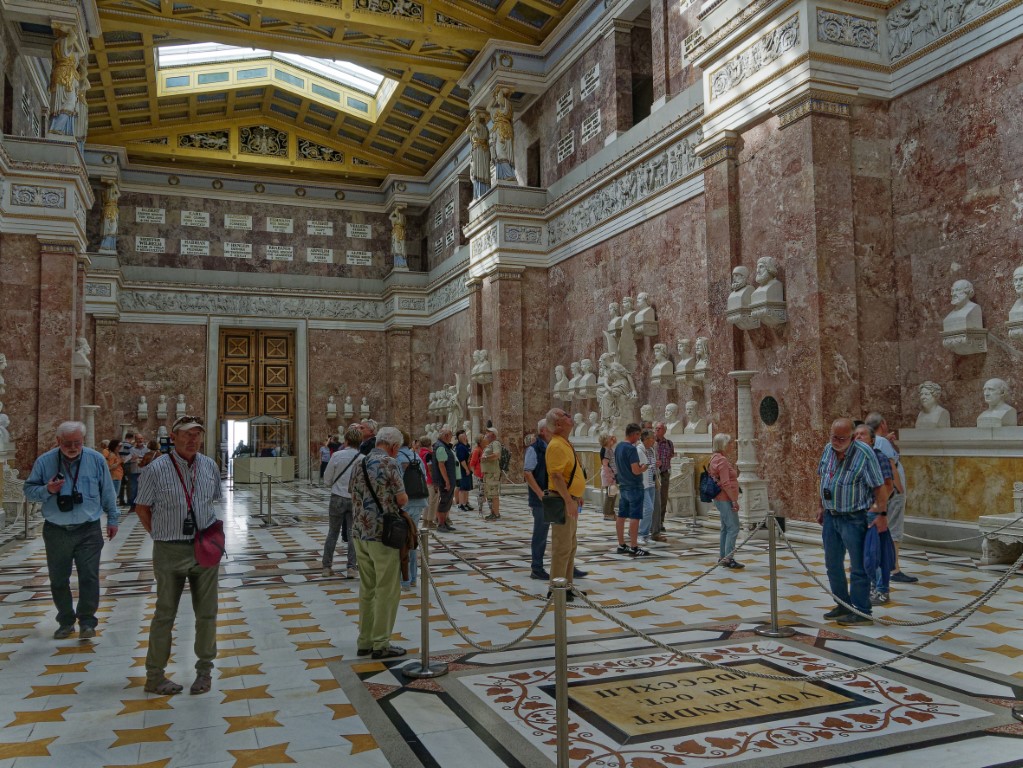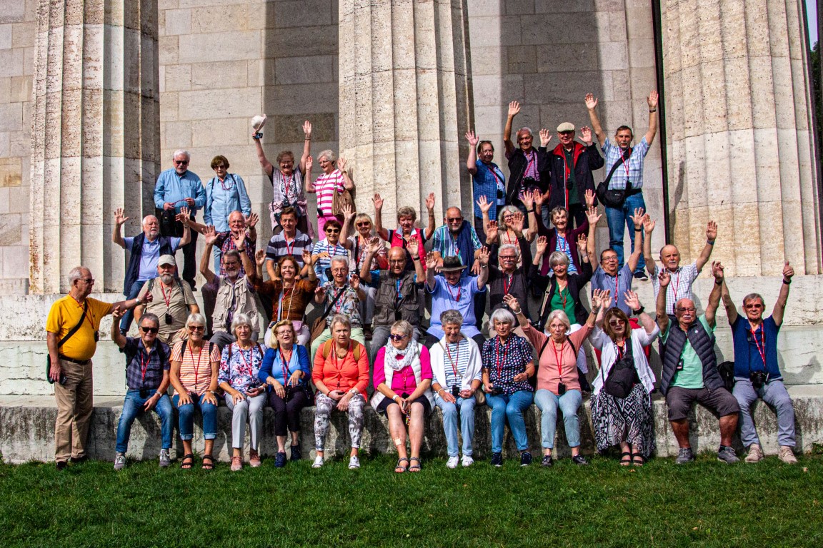 Schon von der Ferne sah man die auf einem Hügel gelegene, an einen griechischen Tempel erinnernde Walhalla. Eine riesige Treppenanlage davor reicht fast bis zur Donau hinunter. Vom Parkplatz waren es nur wenige Schritte bis zum Ziel. Hier erfuhren wir von unserer Führerin Interessantes über den Bau dieser Ruhmes- und Gedenkstätte, die von 1830 bis 1842 im Auftrag von König Ludwig I. von Bayern errichtet wurde. Er wollte damit die großen deutschen Geister ehren. Das Innere der Walhalla ist von überwältigender Pracht. An den hellen Wänden reihen sich 133 Büsten und 65 Gedenktafeln.